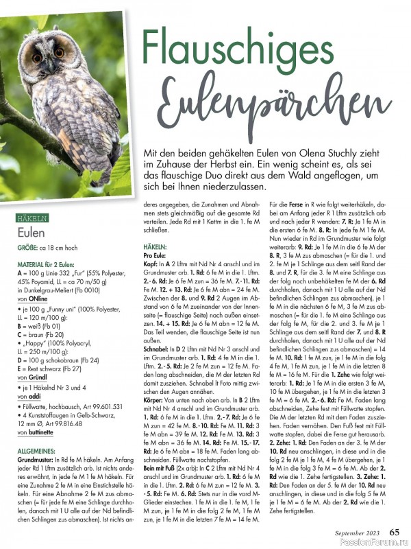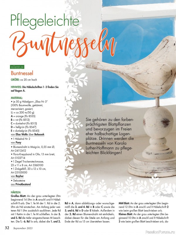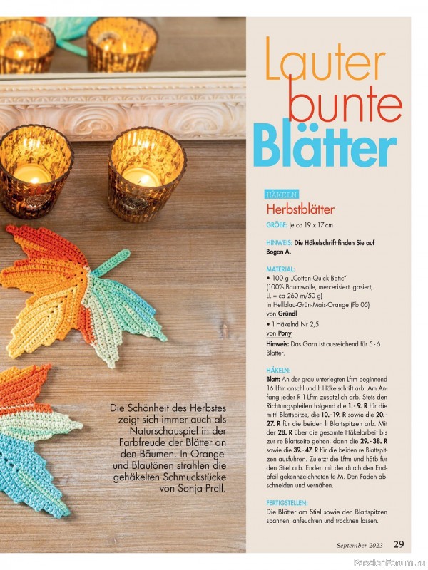 Популярный журнал по рукоделию на немецком языке. В каждом номере журнала собраны уникальные проекты, выполненные в разных техниках - вязание крючком, спицами, вышивка, украшения из бисера, пэчворк и другие.