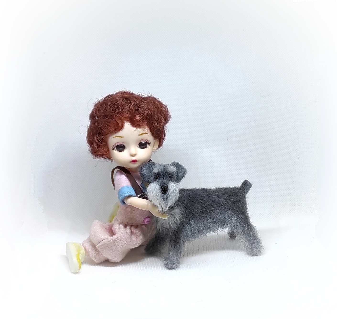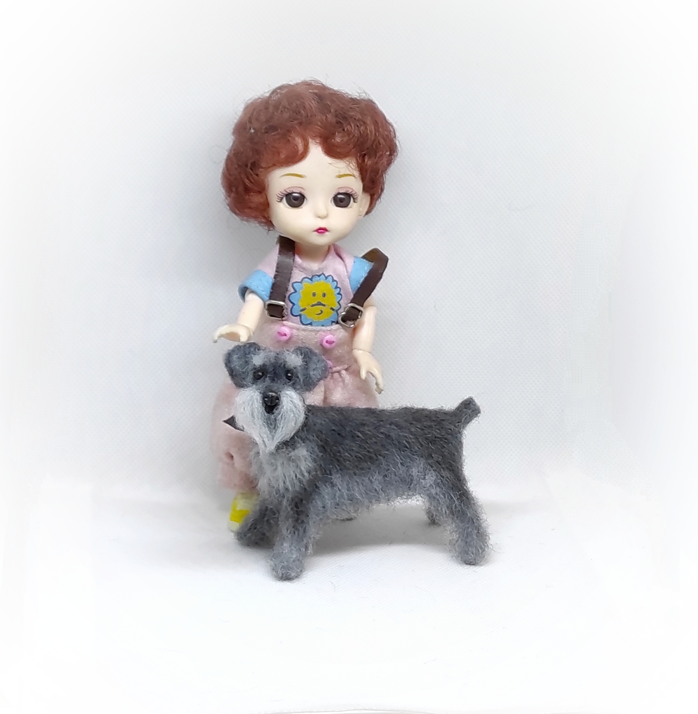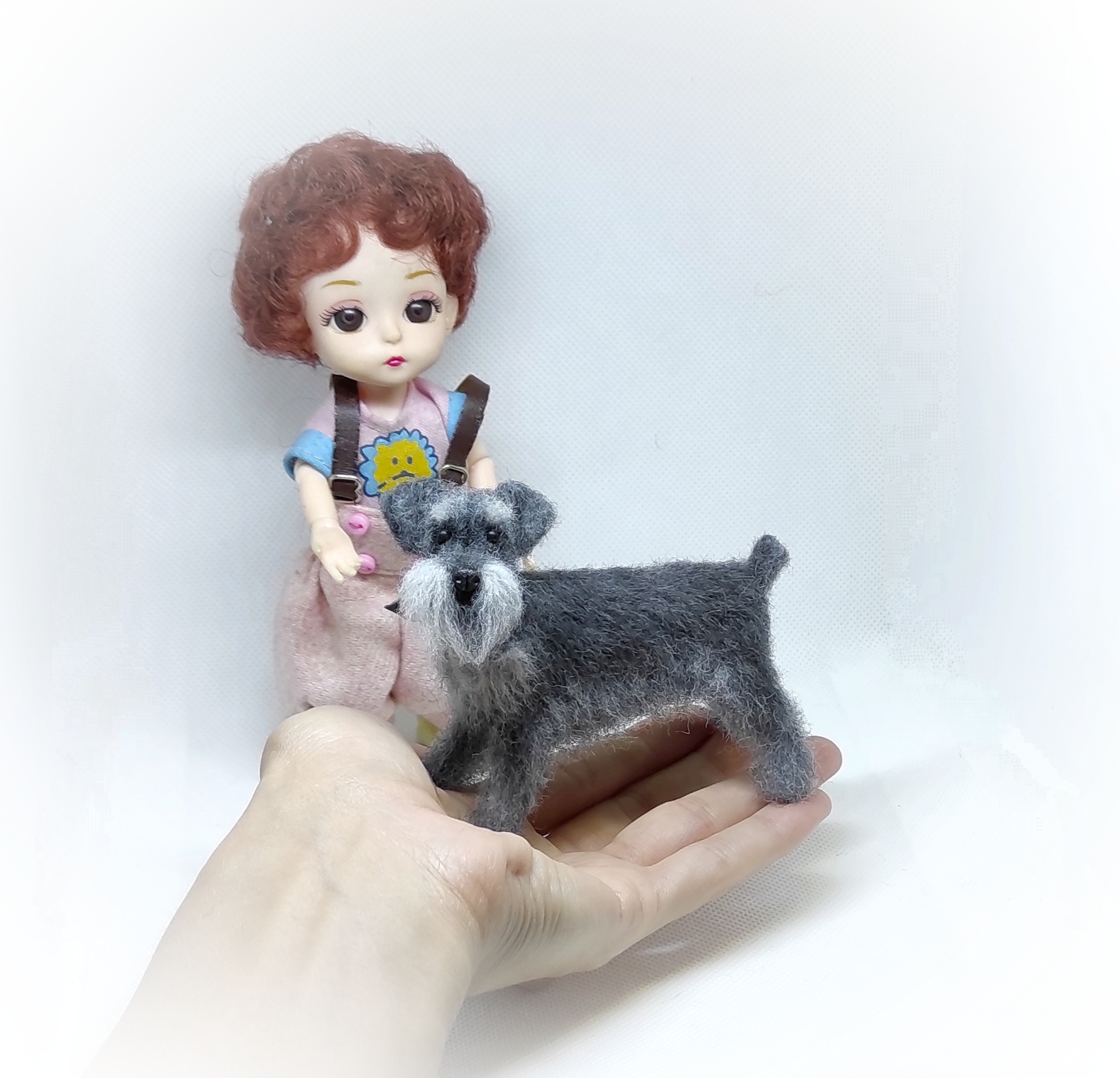 Продается собачка породы цвергшнауцер, свалян из натуральной овечьей шерсти, рост около 8см, лапки на проволочном каркасе