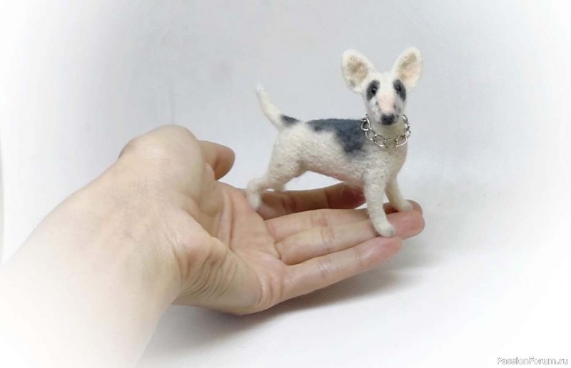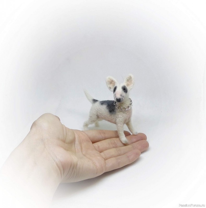 Бультерьер, сухое валяние из шерсти, рост около 7см с ушками