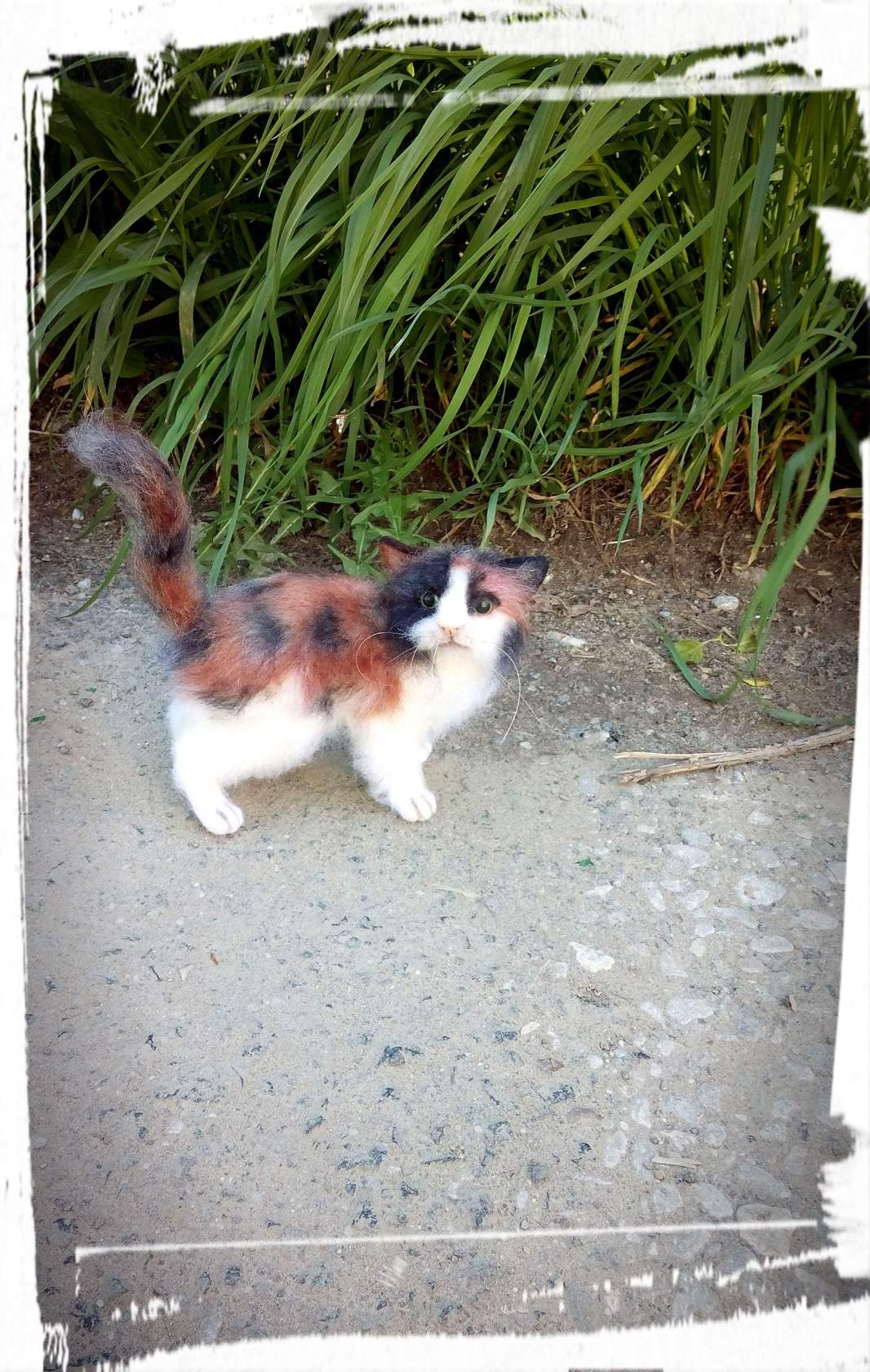 Котёнок,моя очень старая работа,в натуральный размер, свалян из шерсти.