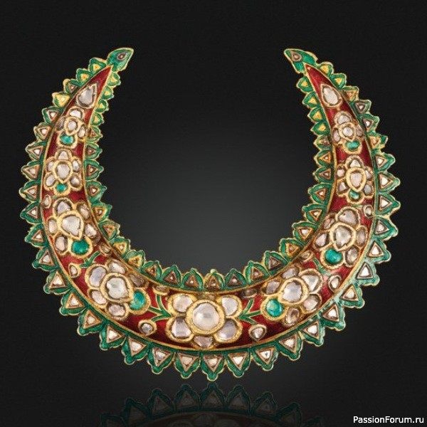 Золотая подвеска-полумесяц с алмазами, изумрудами и эмалью, Индия, XVIII век.