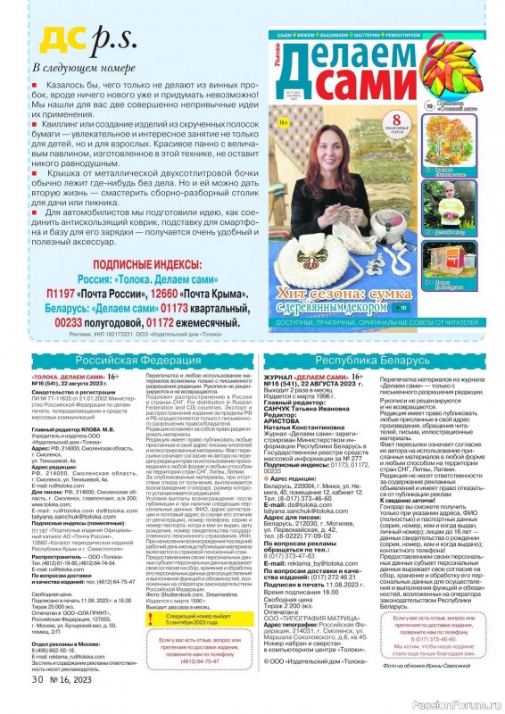 Коллекция проектов для рукодельниц в журнале «Делаем сами №16 2023»