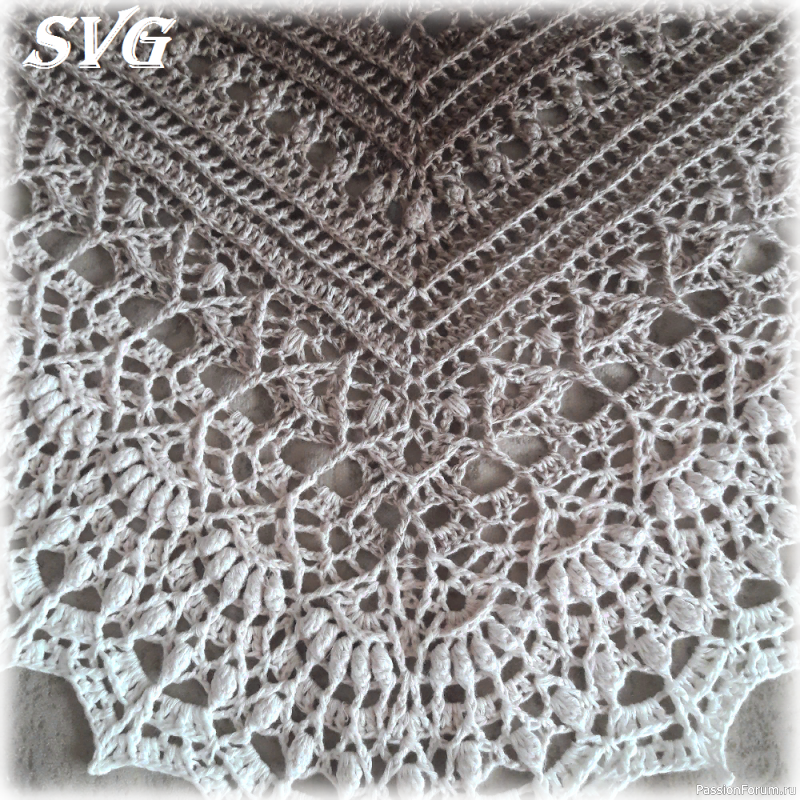 Очень красивая шаль! Есть ли схема или описание?.. Хотела бы повторить ее для себя.