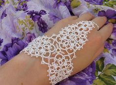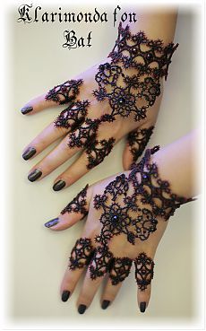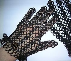 Фотографии митенок, сплетенных в технике фриволите, без схем. Из Интернета....