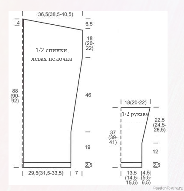 Размер: 36/38 (40/42, 44/46). Инструкция дается для первого размера, содержимое скобок соответствует большим размерам. Если информация дается одним значением без скобок, то она относится ко всем размерам.