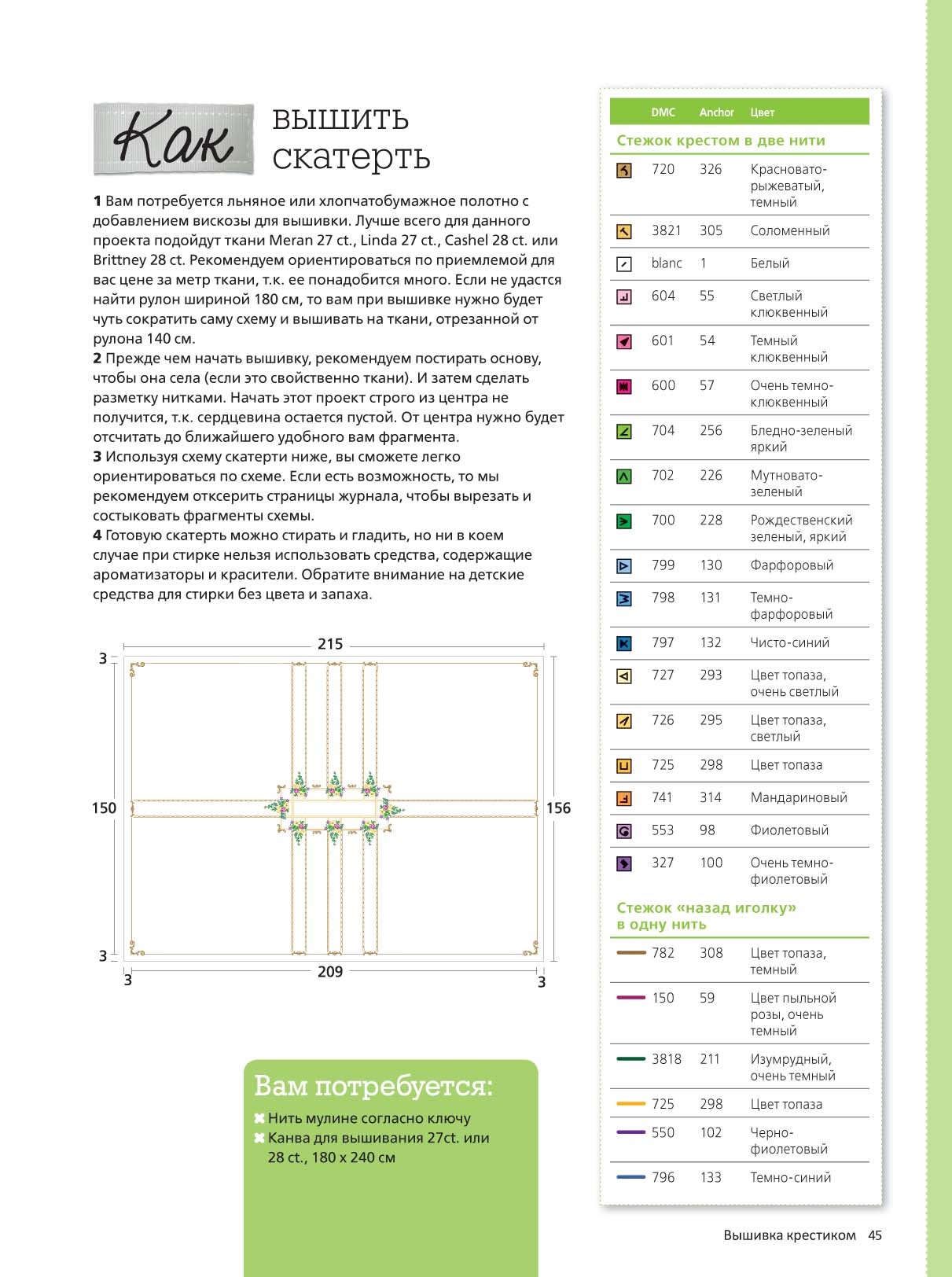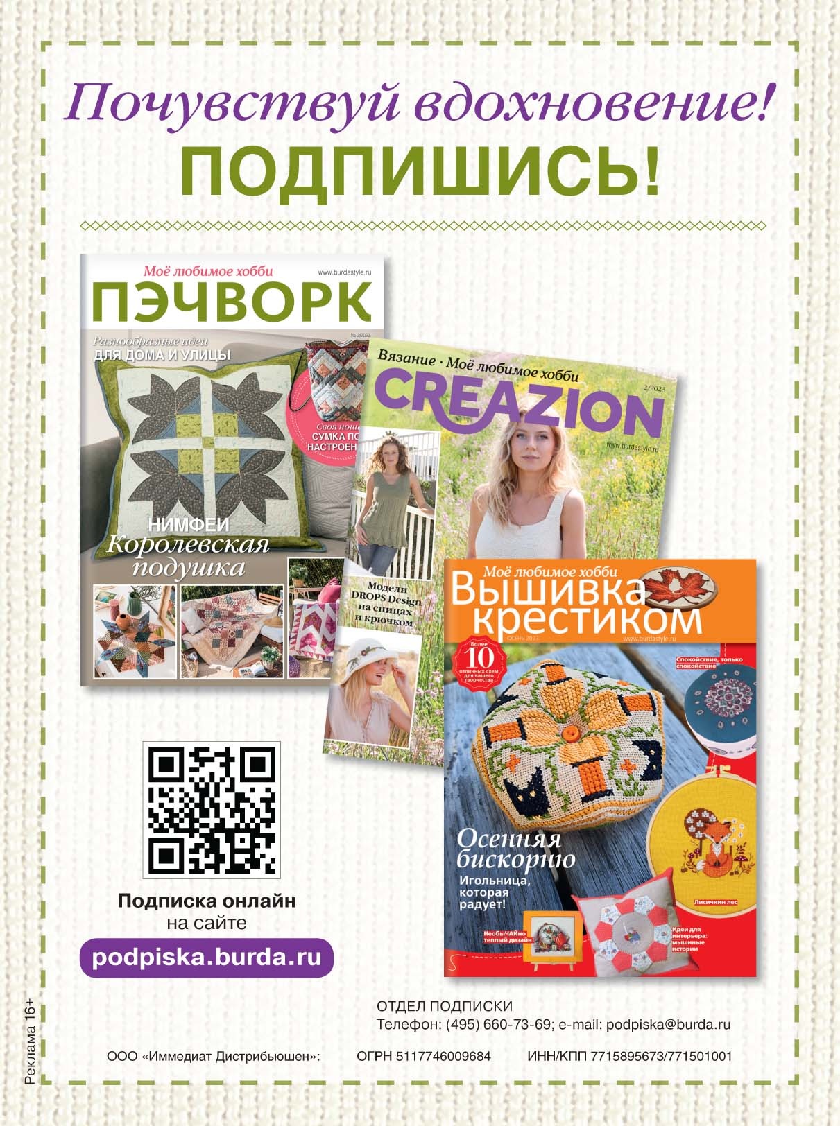 «Вышивка крестиком» - журнал для тех, кто увлекается вышиванием и рукоделием. В каждом номере вы найдёте схемы и лучшие идеи для вышивания от дизайнеров всего мира, советы экспертов, обзор рынка аксессуаров, статьи о рукоделии.
