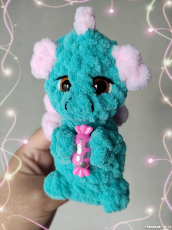 Очаровательный малыш, вязаный дракончик . Высота 12 см. Связан из плюшевой пряжи