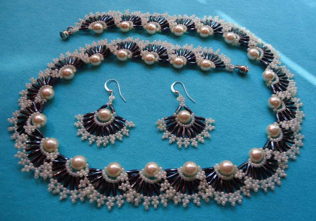 Комплект из бисера, стекляруса и жемчуга