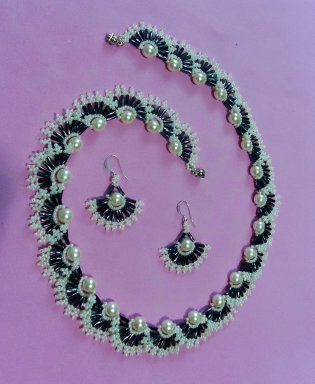 Здравствуйте Рукодельницы! Все готовятся к предстоящим праздникам и я решила не отставать, сделала этот комплект к Новому году, где-то прочитала, что в наступающем году в украшениях лучше использовать жемчуг. Идею нашла в интернете.