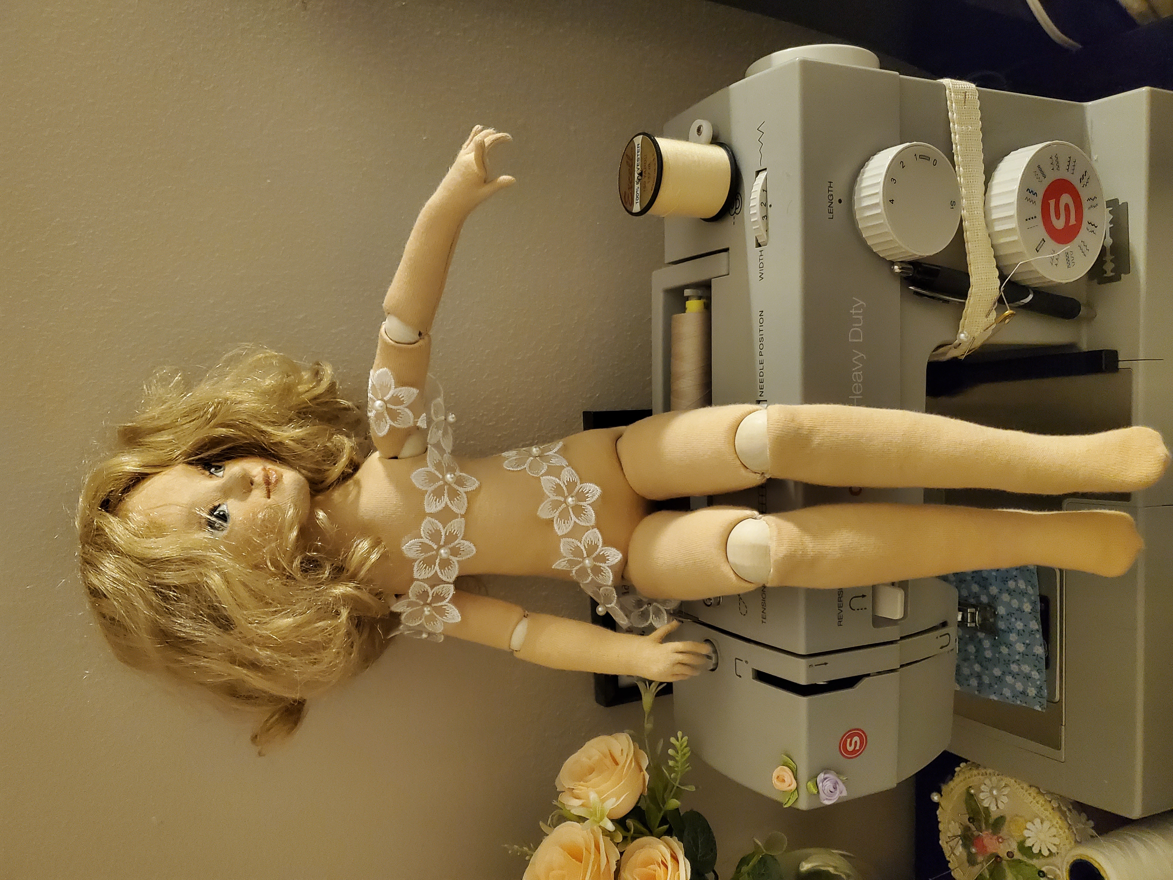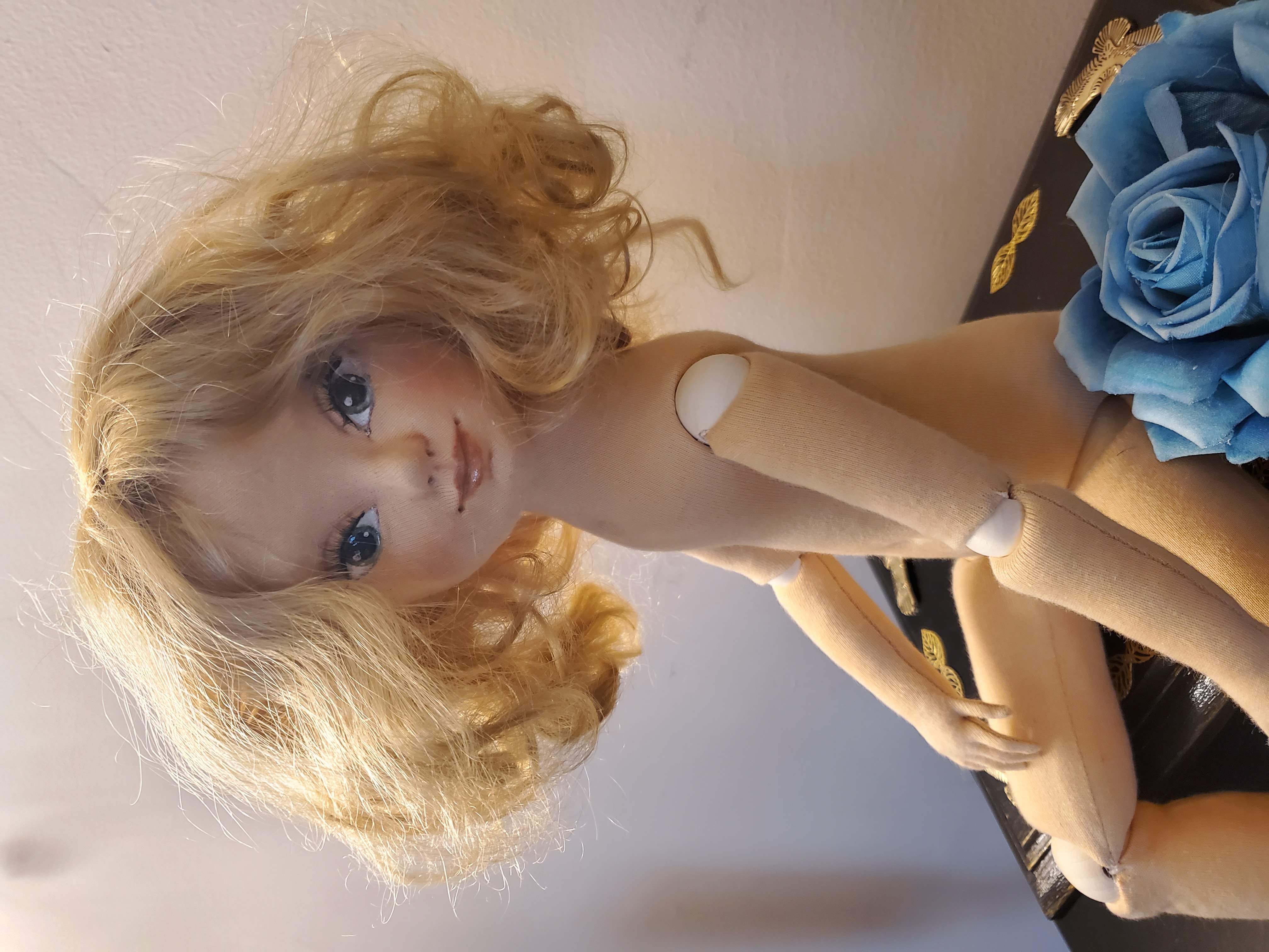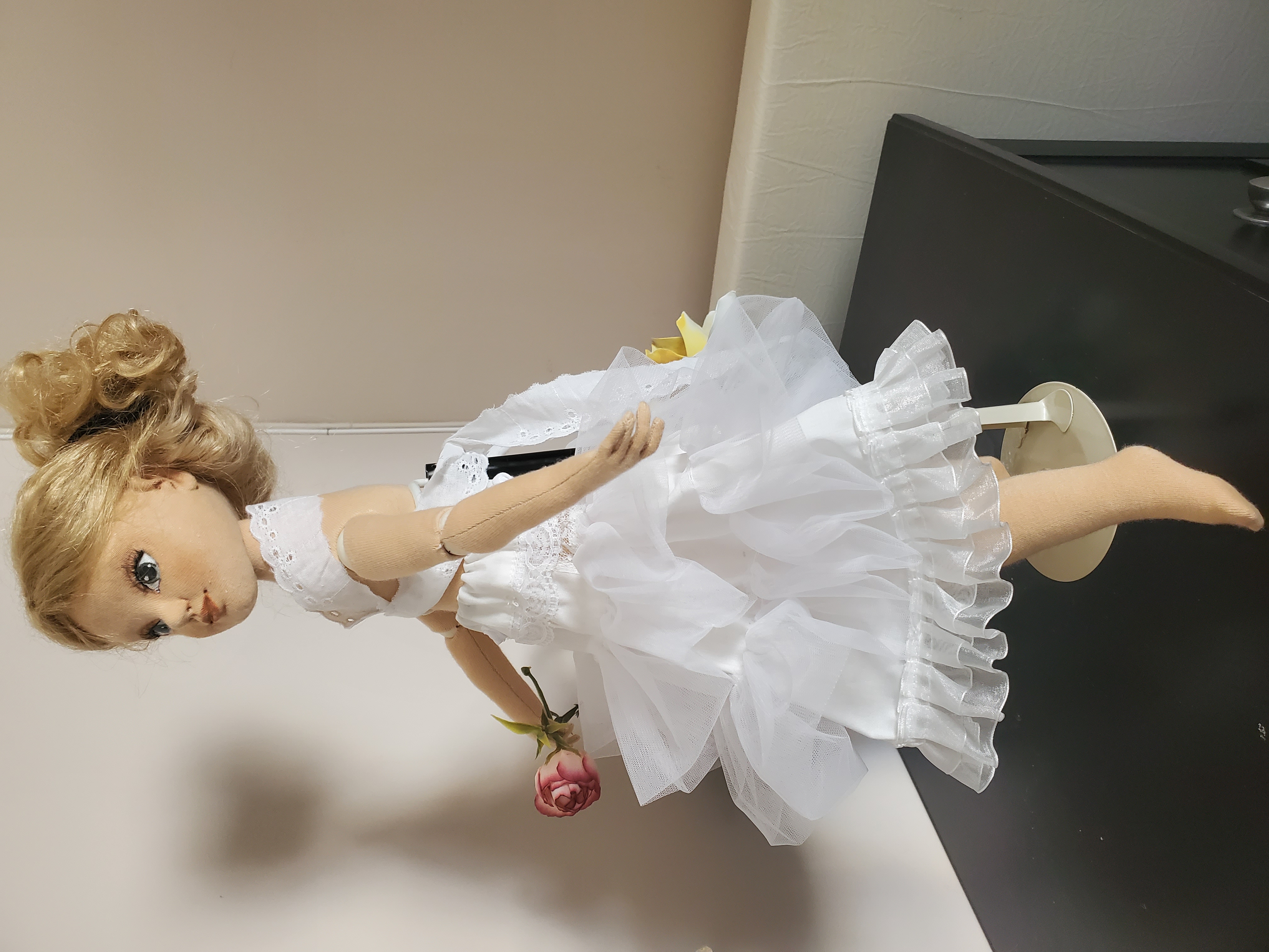 Вообще кукла стоит на подставке, чтобы покащать всю красоту тела.