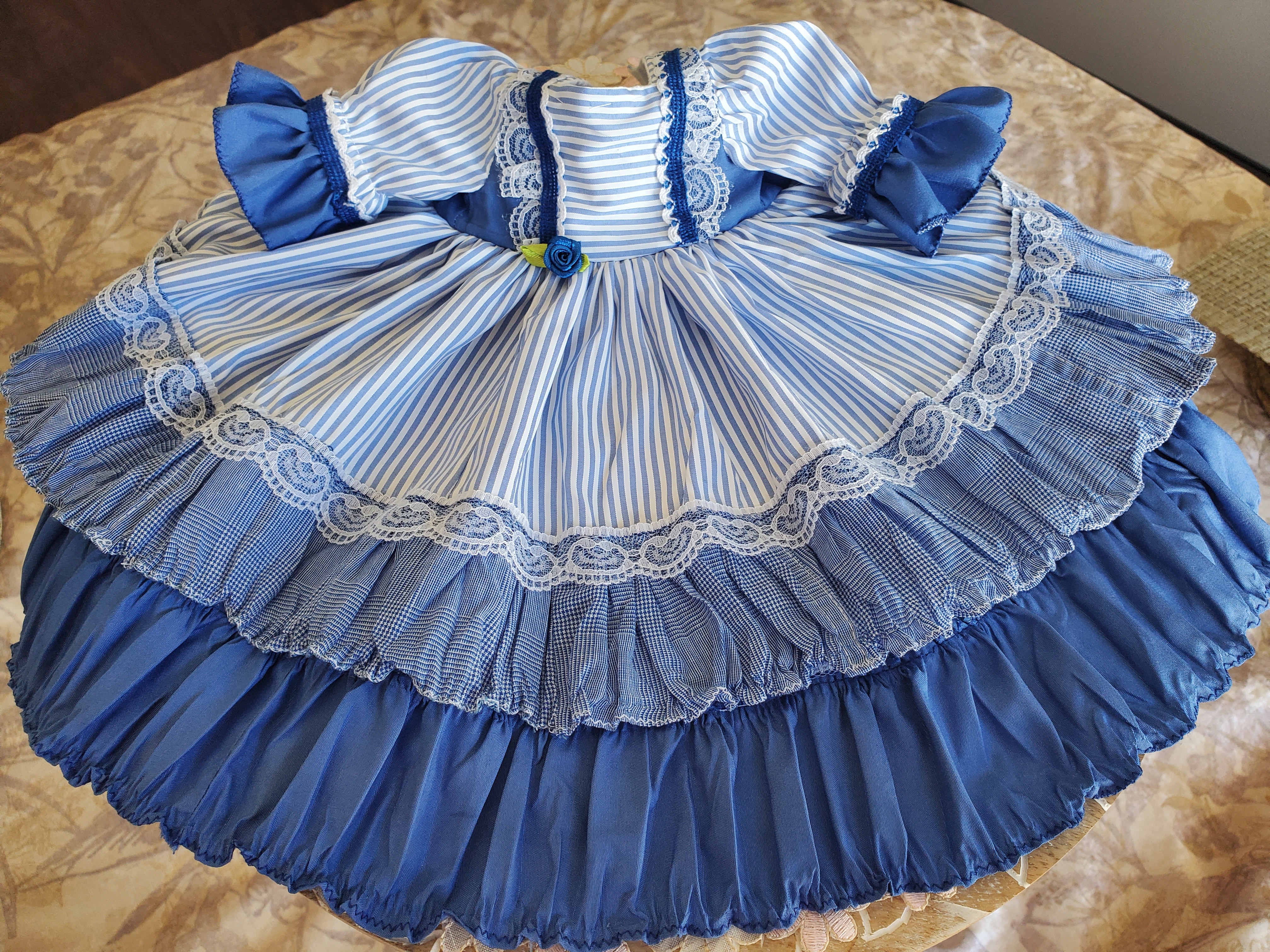 Платьице шила сама. Оно из ситца, декорировано тесьмой, кружевом, ленточкой.