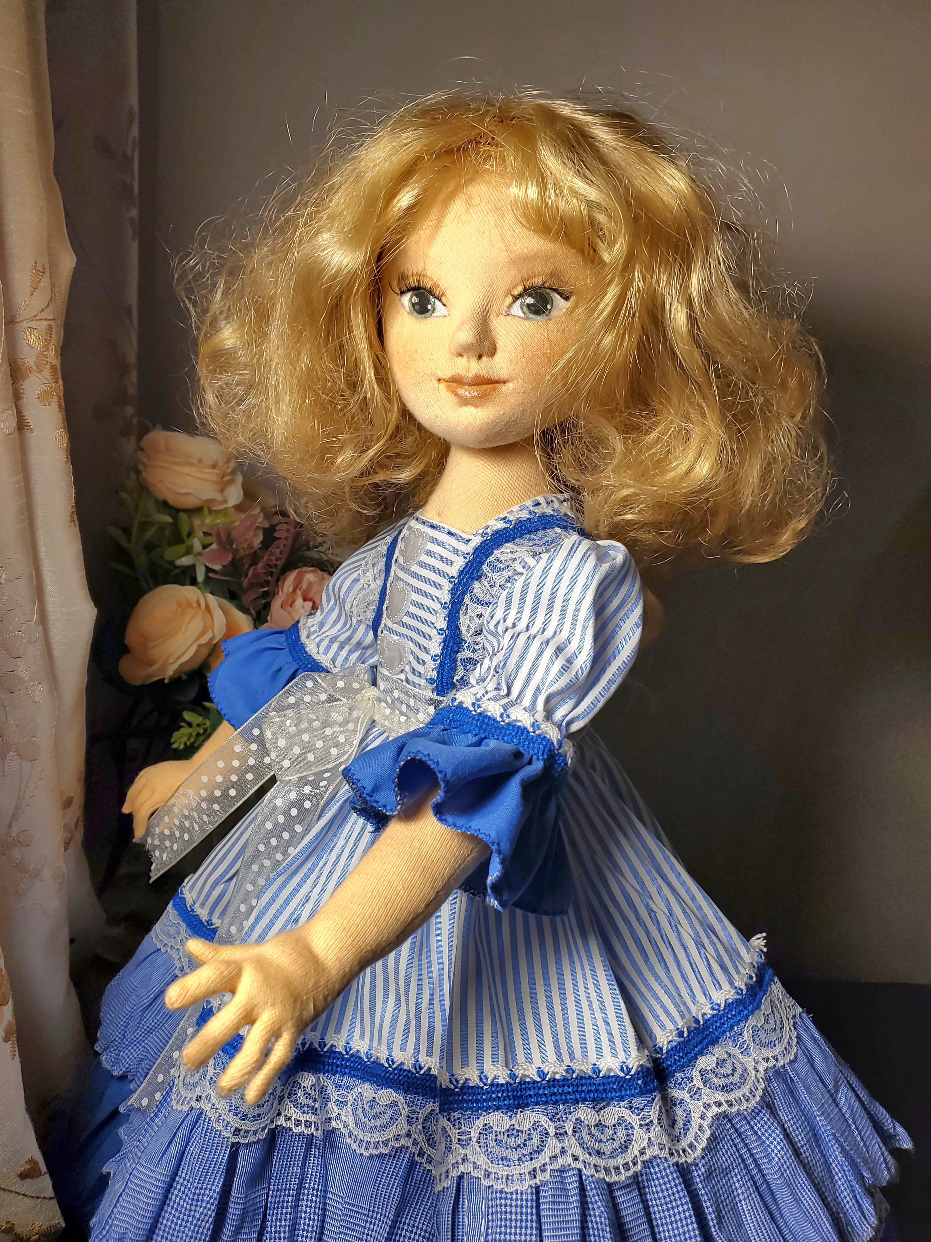 Курносая, раскосая модница-красавица! Отличная кукла! Когда дошла до фото на фоне морских волн, подумалось… Не Василиса, а Ассоль!