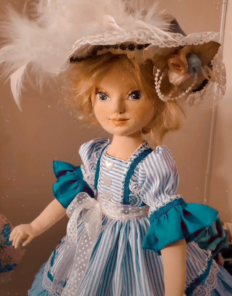 Куколка просто прелесть. Этакая леди. Ей бы еще зонтик в дополнение к шляпке. Личико такое милое и наряды хороши.