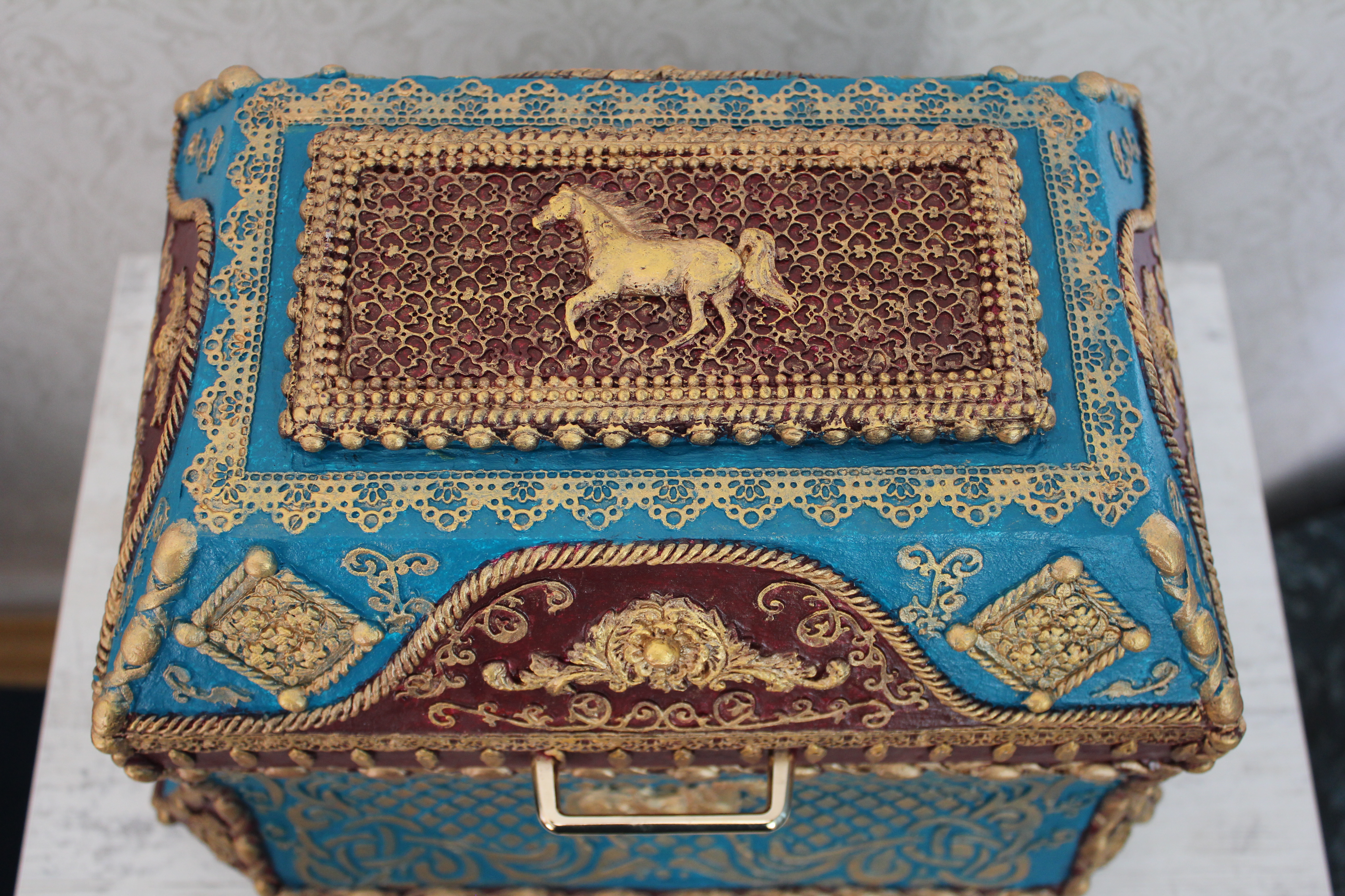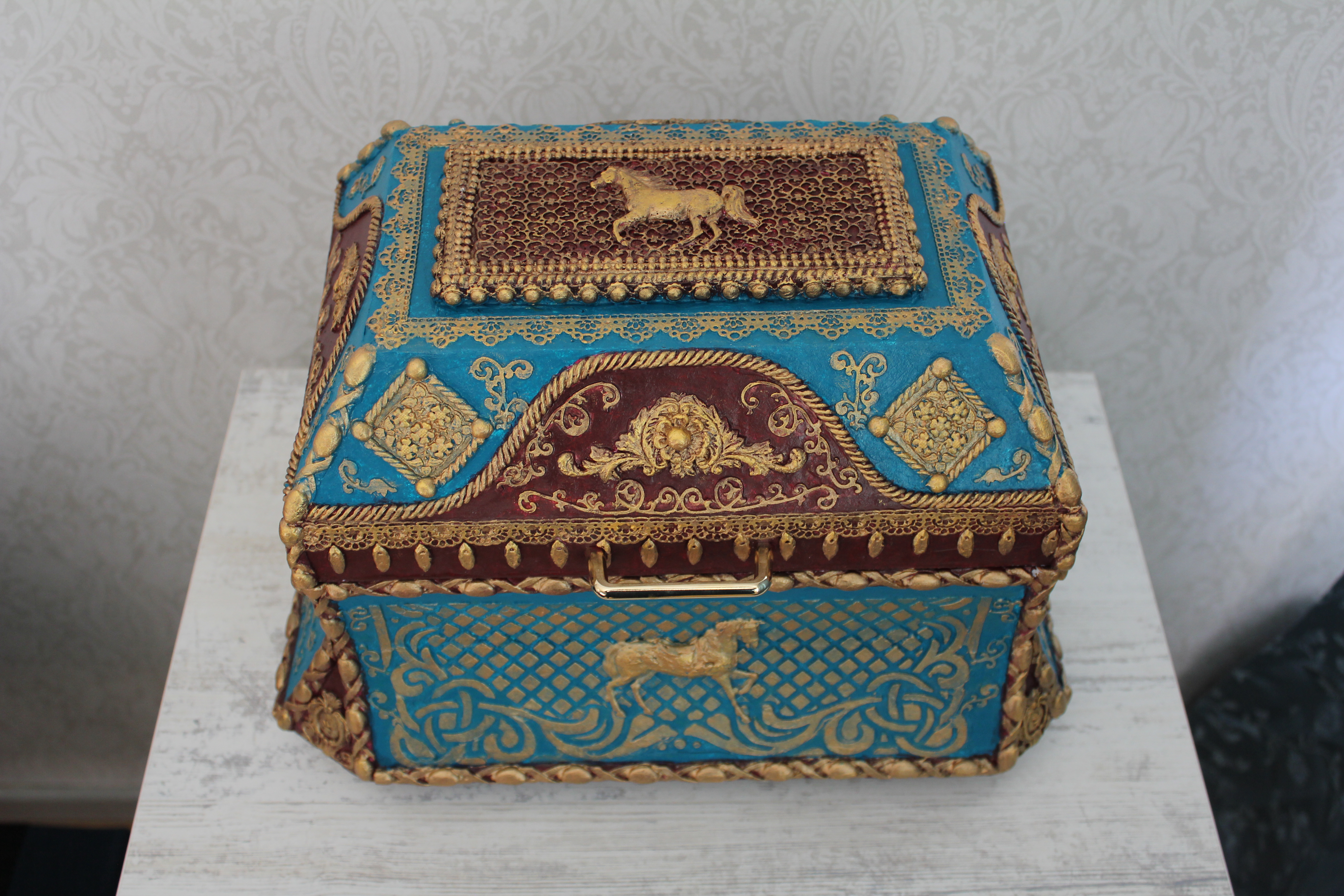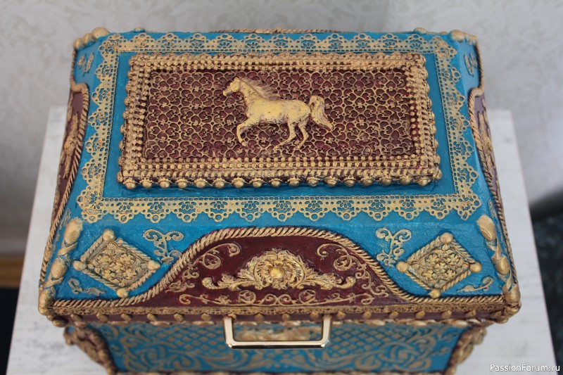 Восхищаюсь Вашим мастерством, Миная! Особенно покорил сундук с лошадью, глаз не оторвать! А форма какая необычная! Творческих Вам успехов и