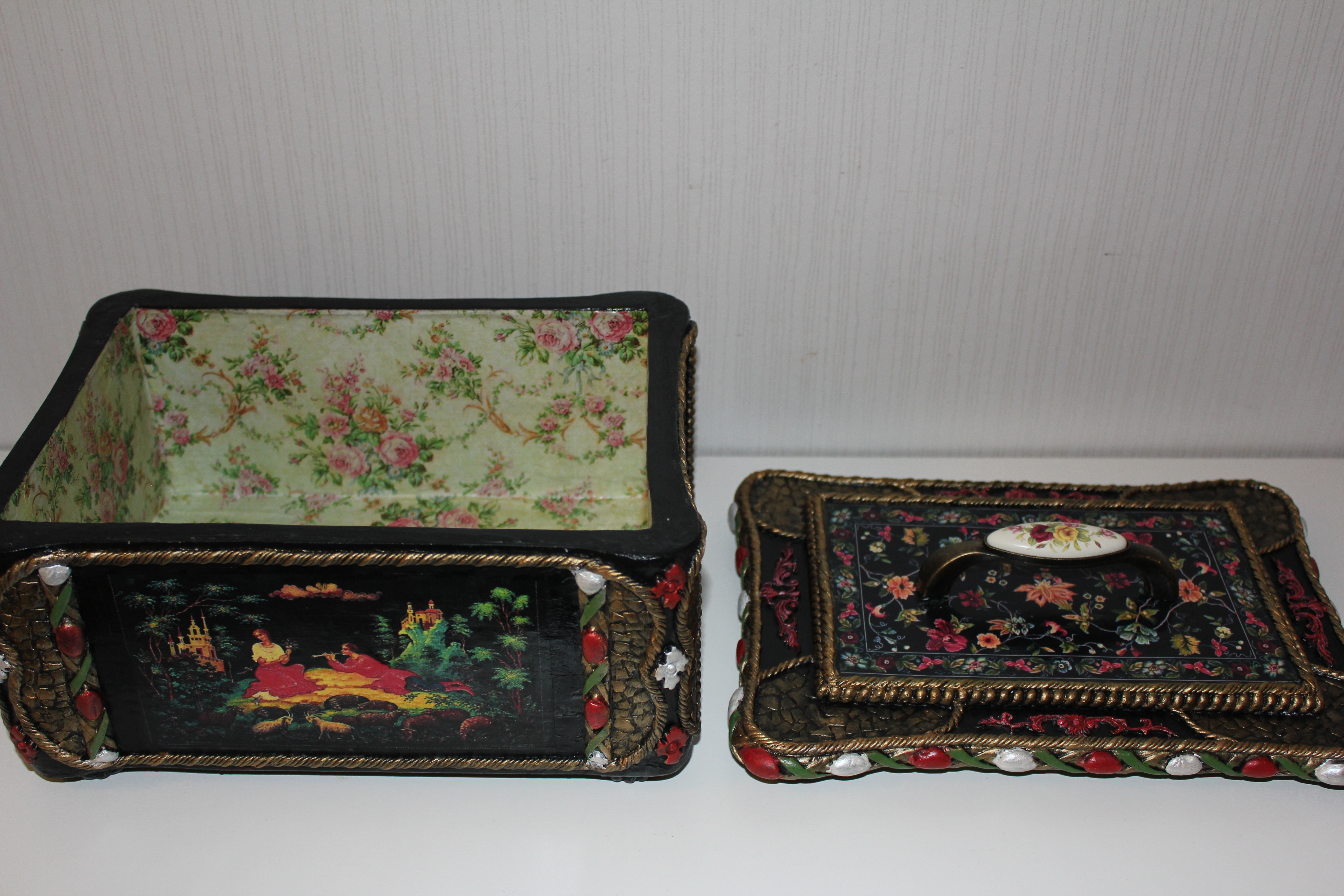Здравствуйте дорогие рукодельницы. Хочу показать вам два сундука и один ларец, сделанных из картона и подручных материалов. Описывать процесс не буду, но на ваши вопросы с удовольствием отвечу. Спасибо всем за внимание!