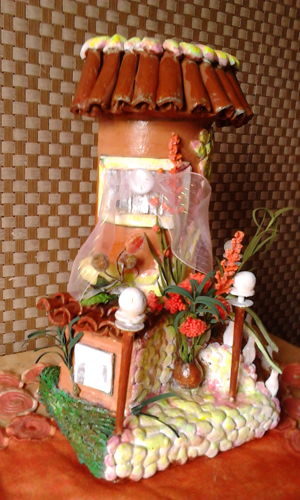 Сделан из полутрубы от линолеума, различный декор