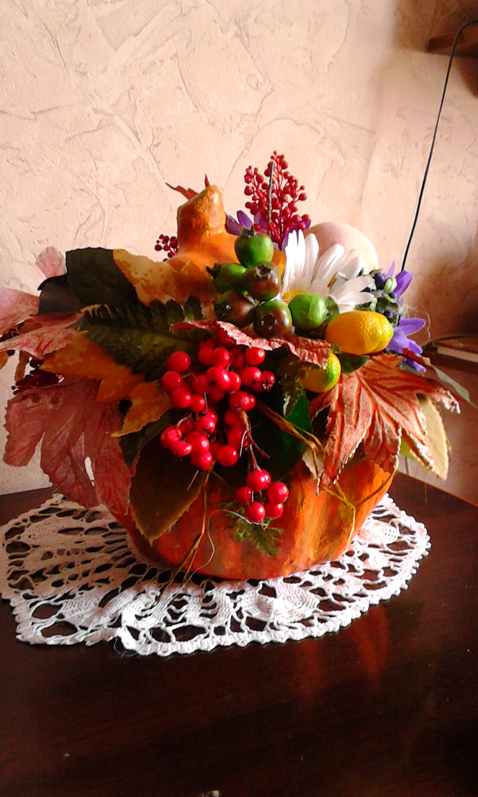 Какое мастерское исполнение! Я по первому фото подумала, что композиция в настоящей тыковке!