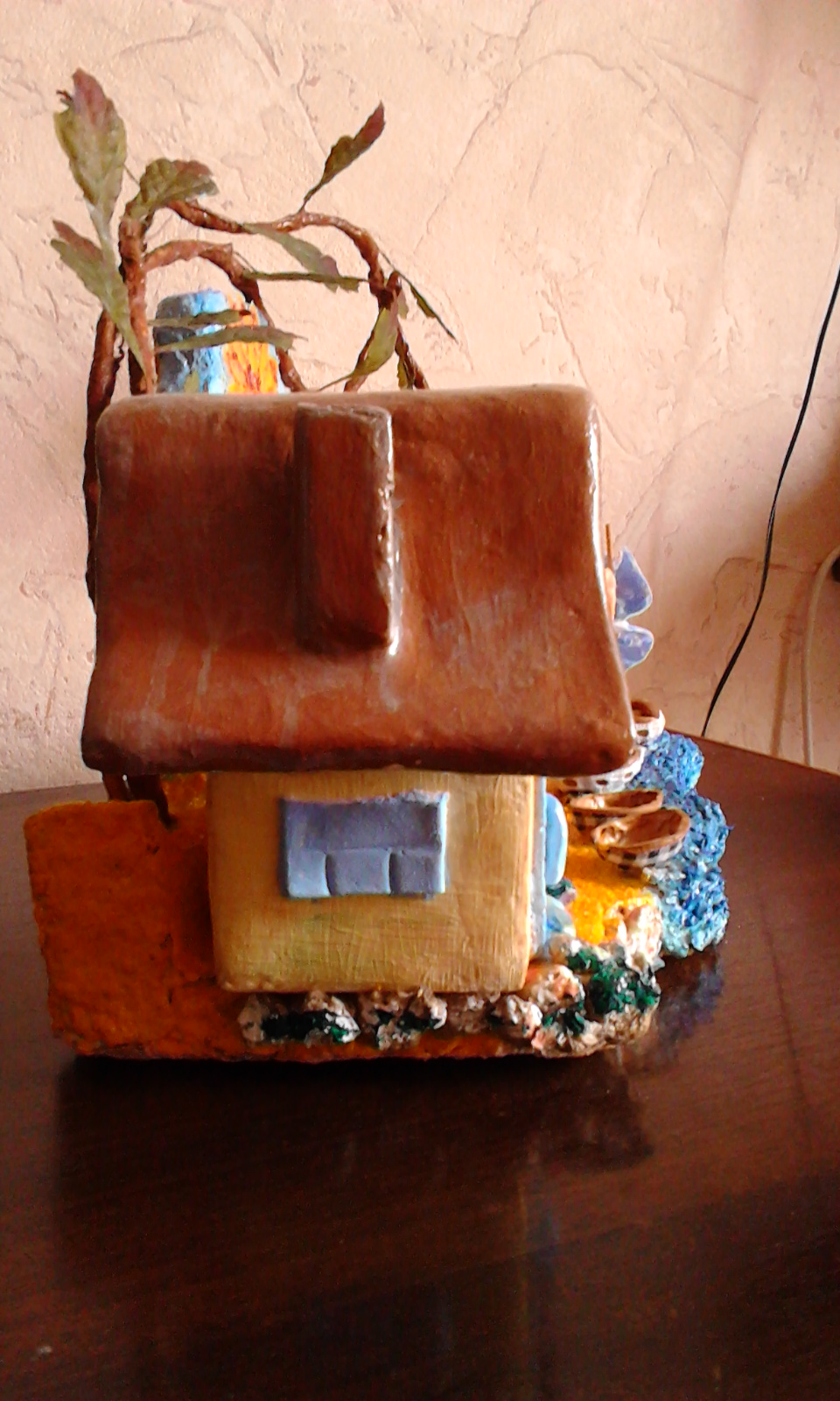 Домик из папье маше, можно и поставить и подвесить