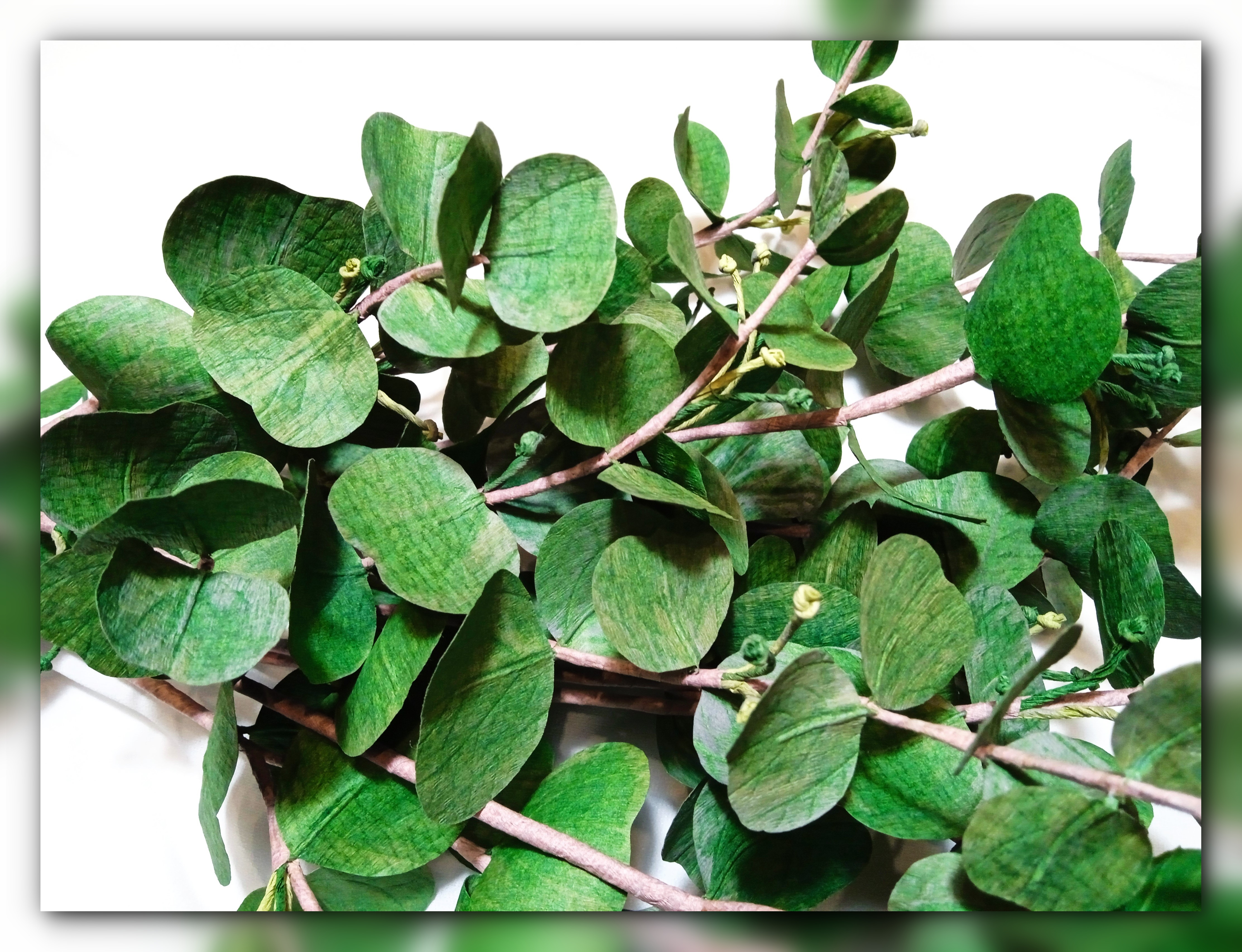 Веточки эвкалипта выполнены из гофрированной бумаги 180г "Cartotecnica Rossi".