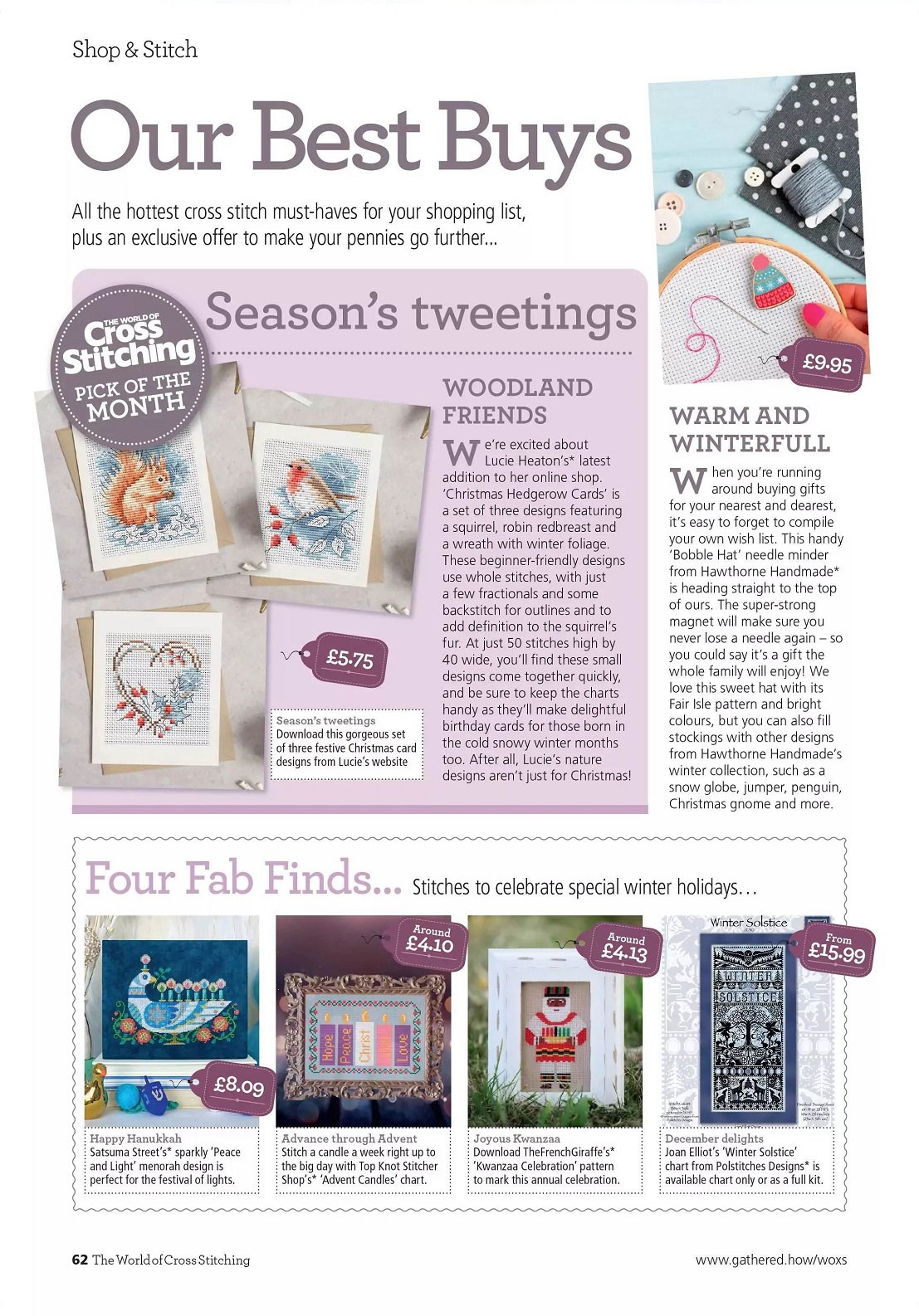 Популярный среди любителей вышивания крестом журнал из Великобритании. Красивый дизайн, множество блестящих идей для вышивания, интересные статьи, рекомендации мастеров. В каждом номере авторы журнала предлагают коллекцию самых красивых проектов от лучших дизайнеров.