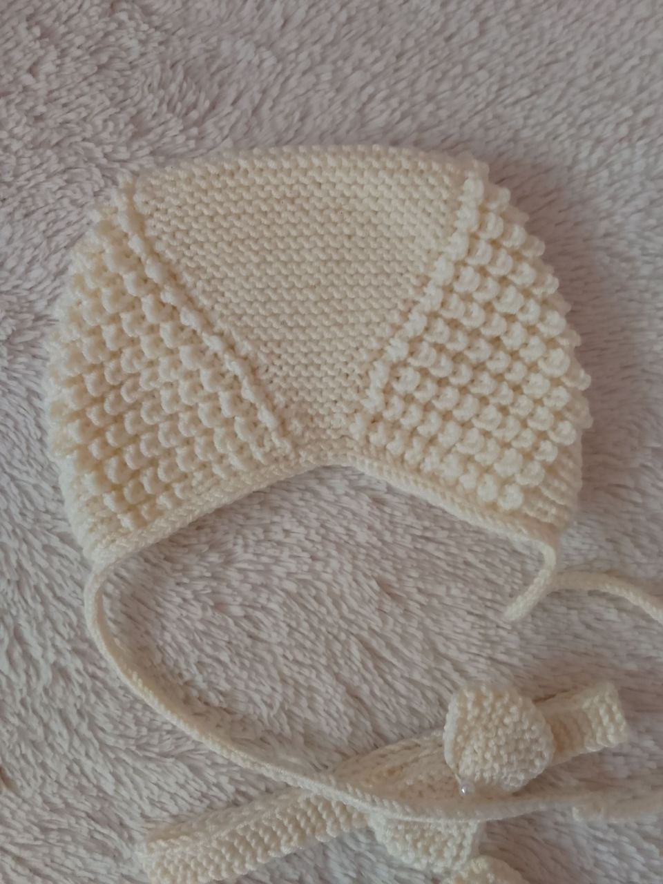 Вот такой комплект (комбинезон, чепчик, пинетки и повязочка на голову) был связан для новорожденной малышки.