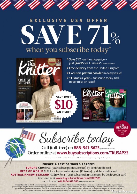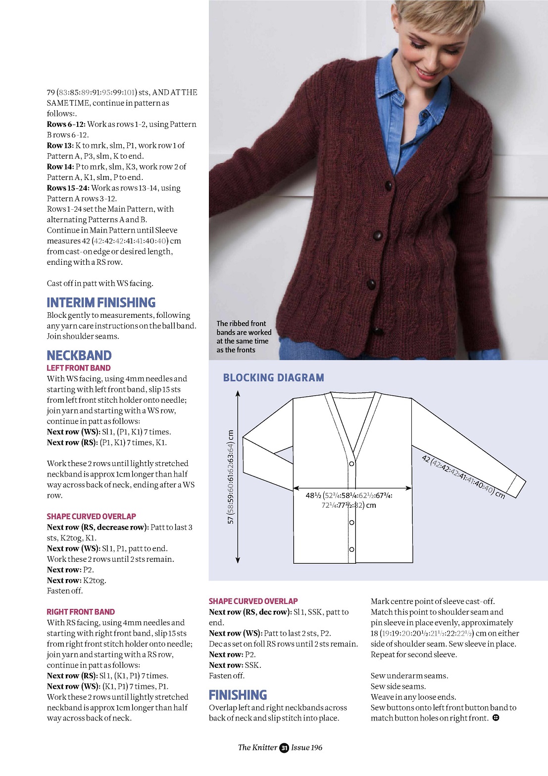 Популярный журнал из Великобритании посвящен вязанию спицами. Каждый выпуск содержит новые оригинальные проекты трикотажной одежды и вязаных аксессуаров от известных дизайнеров. В выпуске представлены современные проекты в классическом стиле, сочетающие в себе комфорт, модные тенденции и очарование нестареющей классики.