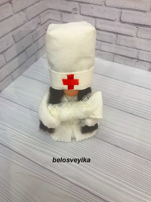 благодарю Я ранее делала гномов в образах поваров.А в этом году нужно было что то необычное, непокупное подарить врачам и мед сёстрам.Вот решение пришло само.
