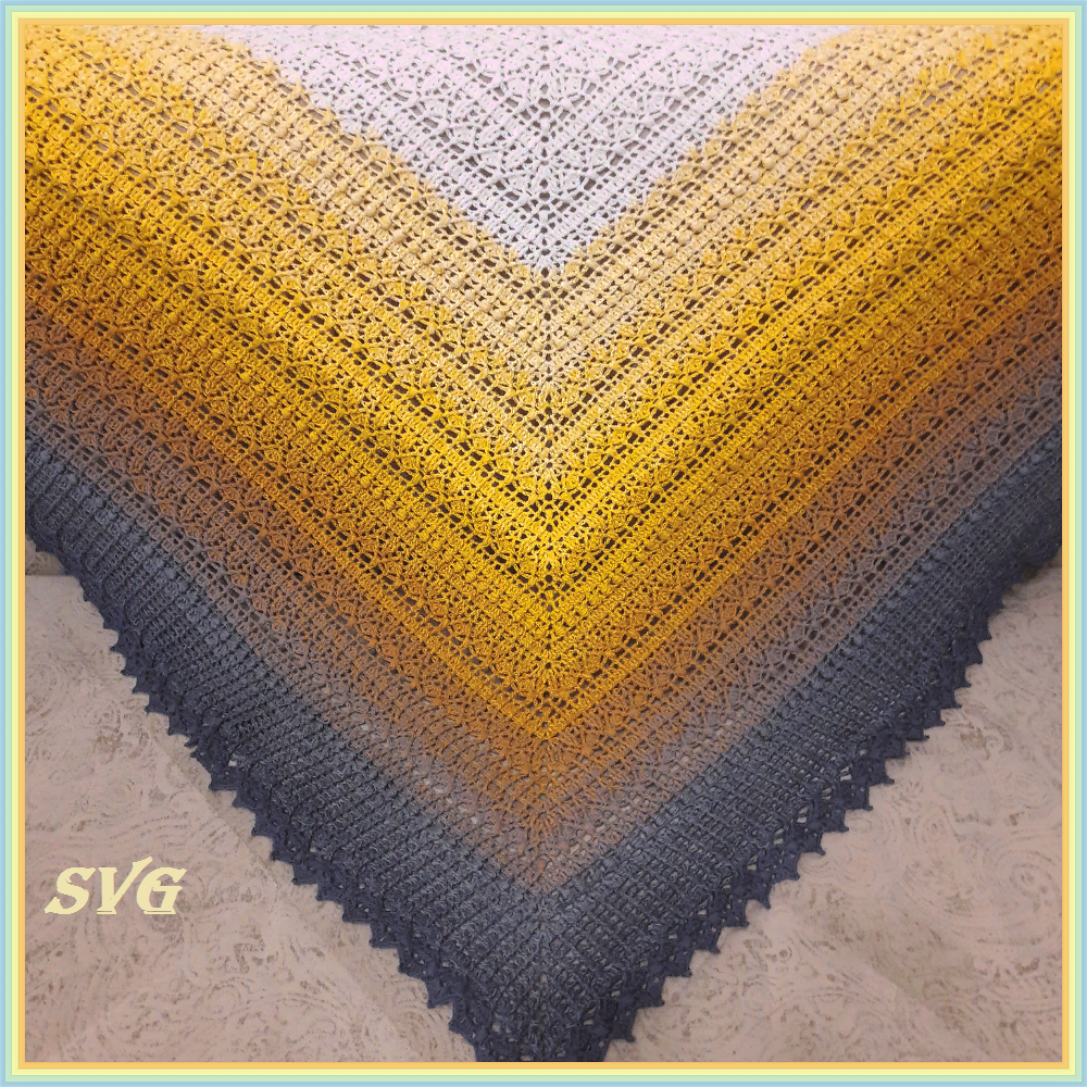 Очень понравилась повторная шаль! Узор, прекрасно подобранные цвета ниток с плавным переходом от светлого цвета к тёмному!