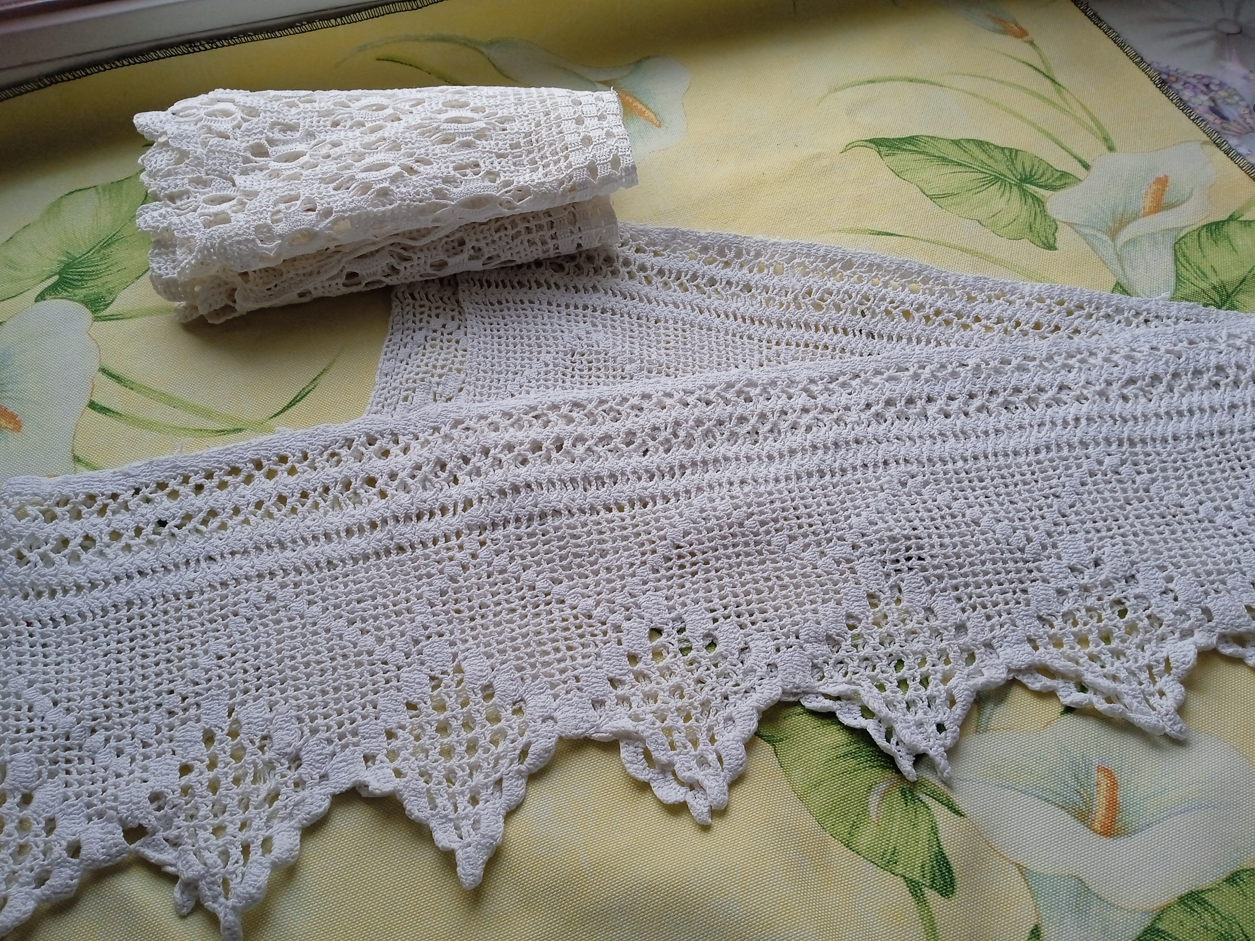 У моей бабушки такой подзор был на простынях, как на первой фотографии. Жалко, не сохранился.