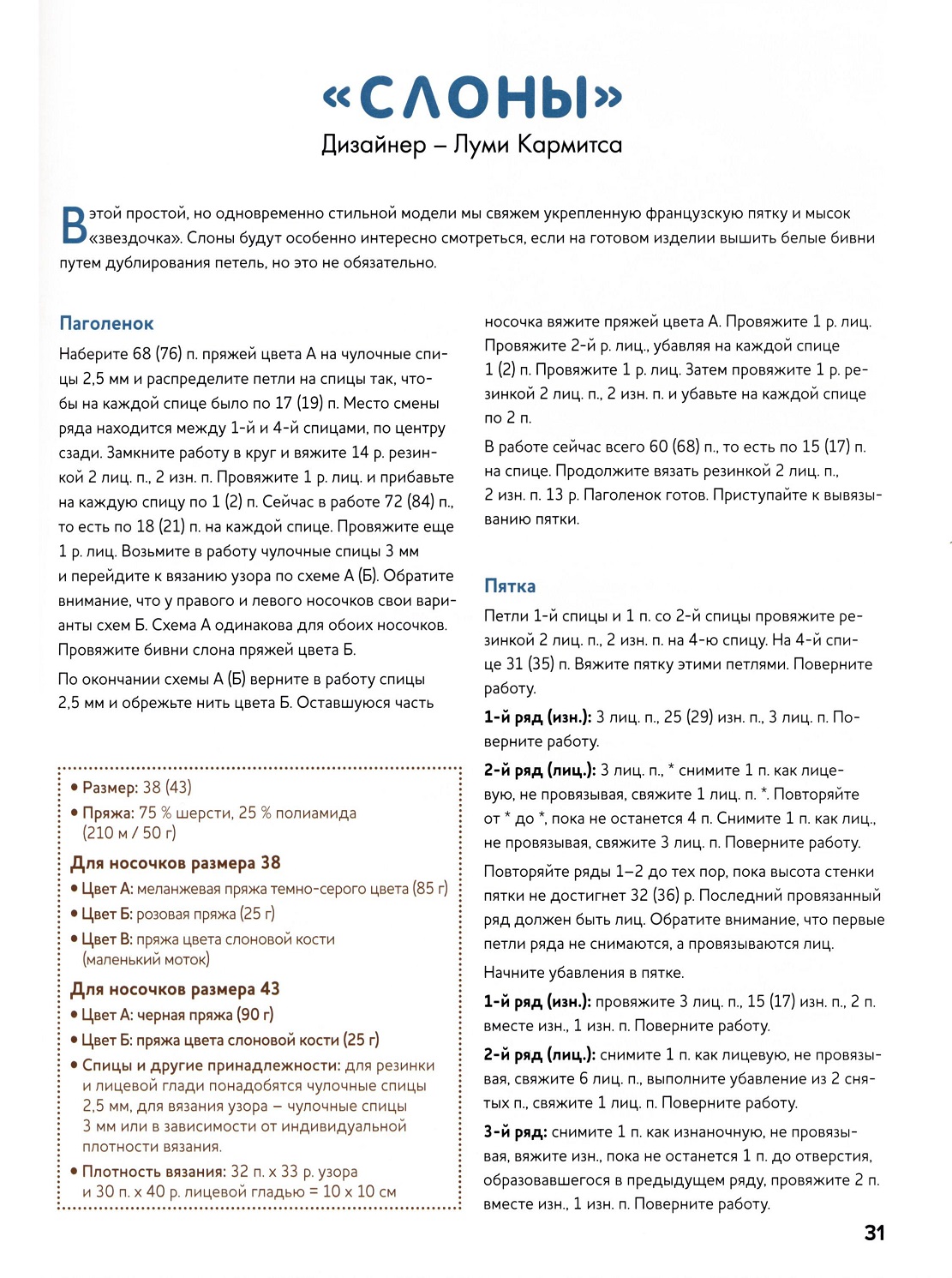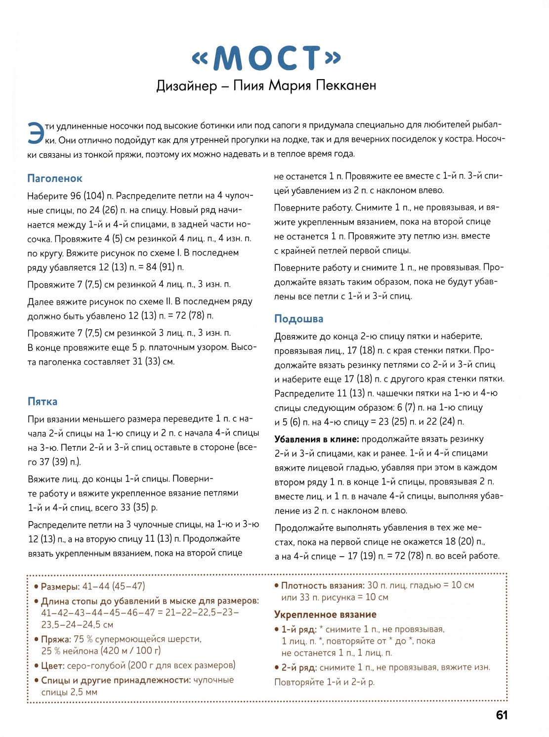 Большой сборник идей для вязания теплых и модных мужских носков на любой вкус! В этой книге собрано более 20 лучших моделей носков, связанных спицами, от известных финских дизайнеров.
