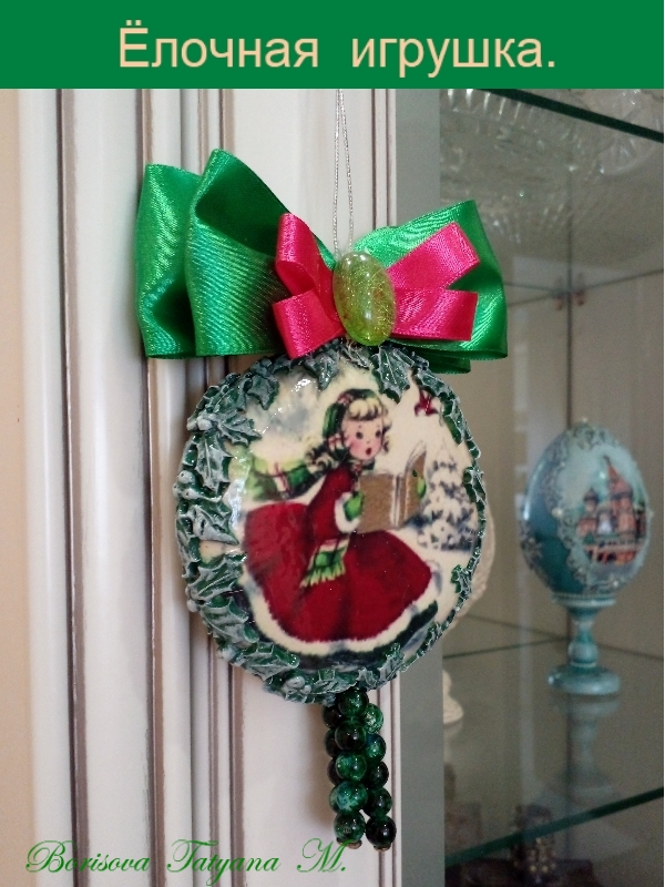 Всем доброго времени суток! Решила сделать 2 медальона для ёлки...или для новогоднего декора. Заготовки для медальонов сделала сама из пеноплекса. Остальное- декупаж, молды, бантики, кисти. С Наступающим!