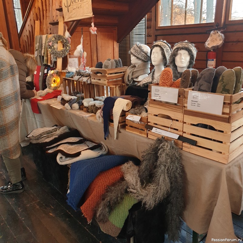 Спасибо. Жаль, что здание было так далеко от основной ярмарки и не было времени сбегать туда и поснимать. Там были, в основном, традиционные для Норвегии вещи. Очень много вязаных вещей, шерстяная пряжа домашнего изготовления, очень много традиционной еды и выпечки, много венков и всяких прибамбасов, которые вешают на двери и окна. Были продавцы из других стран: из Мексики, например, даже 1 ларек был с какой-то едой с Мадагаскара.