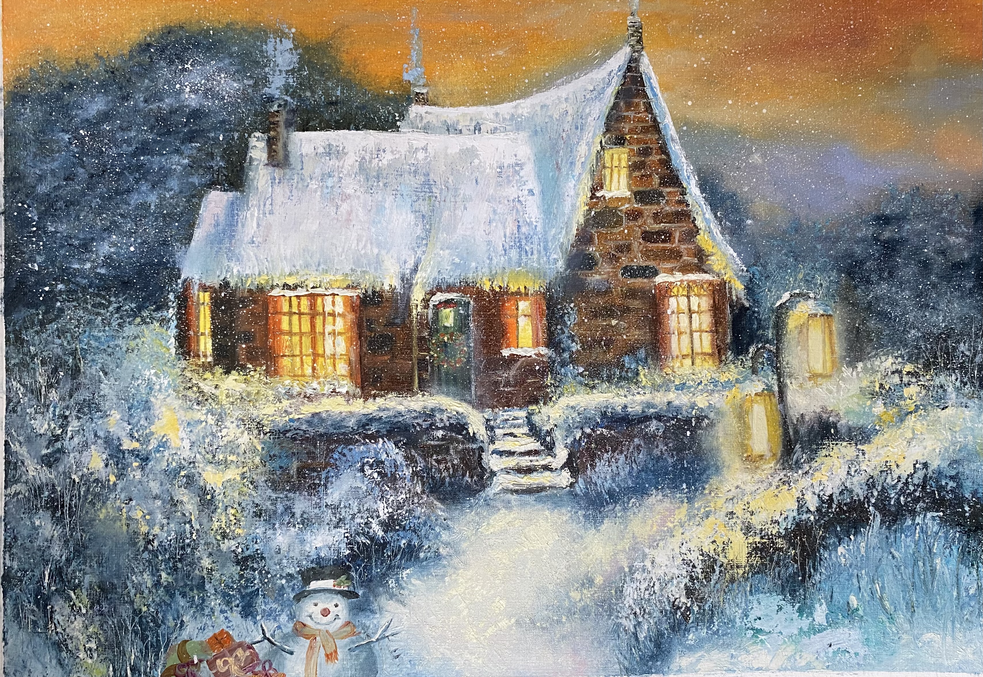 Очень красивая картина, немножко фантастическая. Чем вы рисуете, на чем?