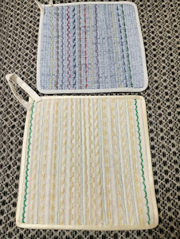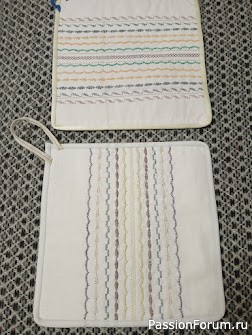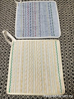Придумала куда пристроить запасы х/б ниток из советского времени. Вышила прихватки. Результатом довольна.