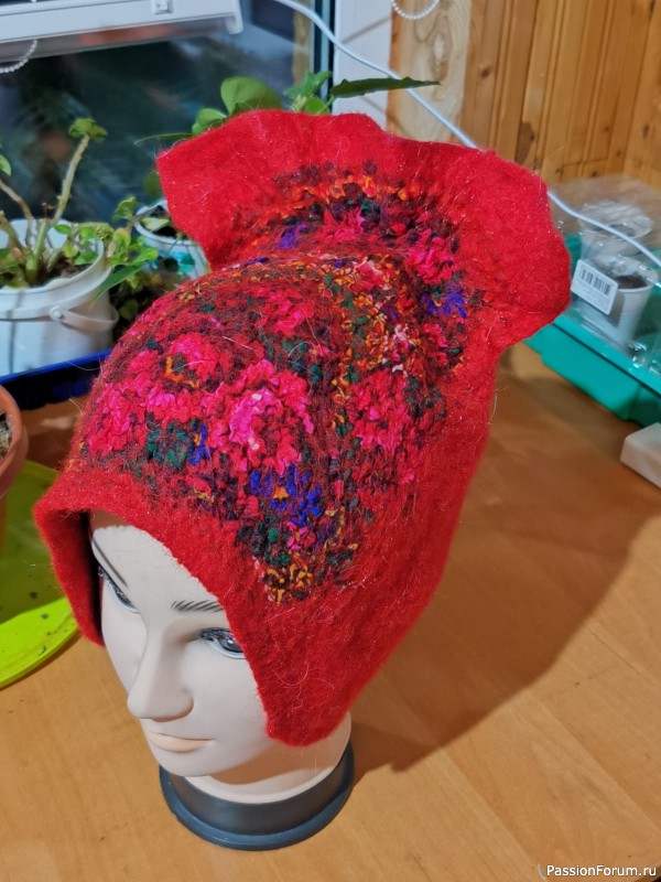 благодарю! ткань немножко не удачная по составу- плохо привалялась- но мне тоже нравится. жду модель свою- пофоткать как будет на голове сидеть. Мой красный сидит отлично. еще варежки и шарфик к своей надо свалять