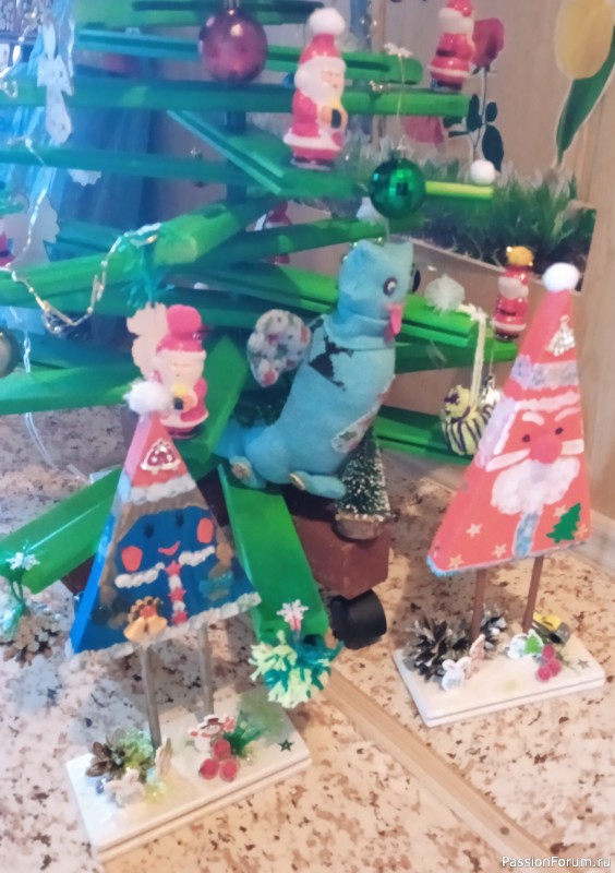 Ну шикарно же! И в одном стиле, под стать ёлке! Молодцы, да и только! За праздники ещё чего-нибудь придумаете-добавите, я уверена (даже и подсказывать идеи не буду, у вас там целое бюро идей!) Браво! Девочкам привет!