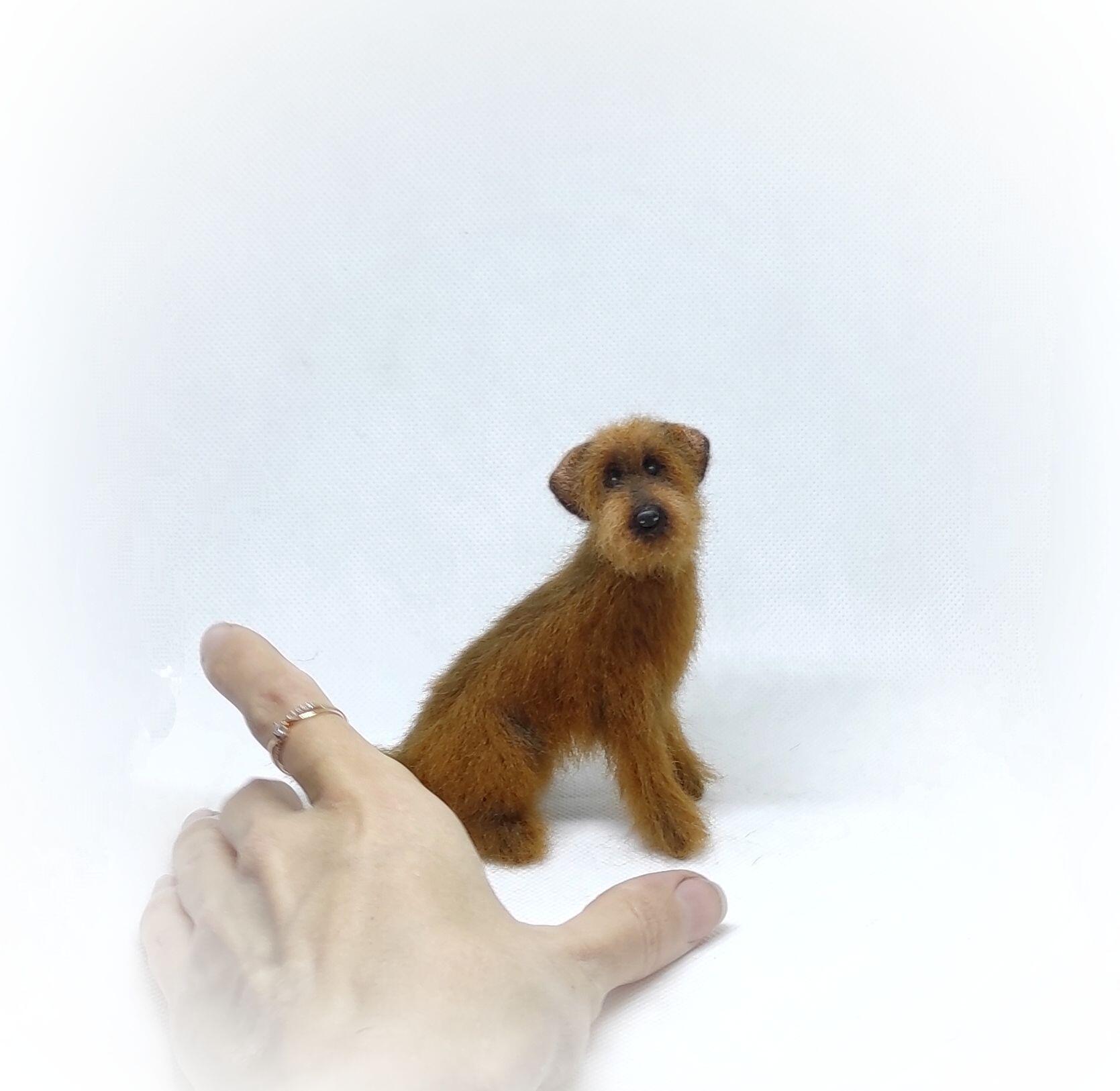Двортерьер из шерсти, рост около 10см, передние лапки на проволочном каркасе.