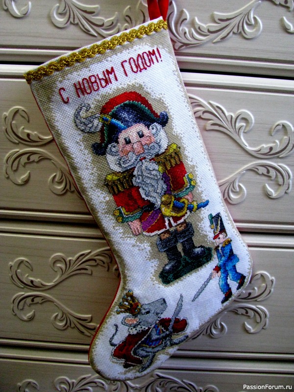 Как все красиво — и ёлка, и вышивка, и сапожок, и подсвечник!