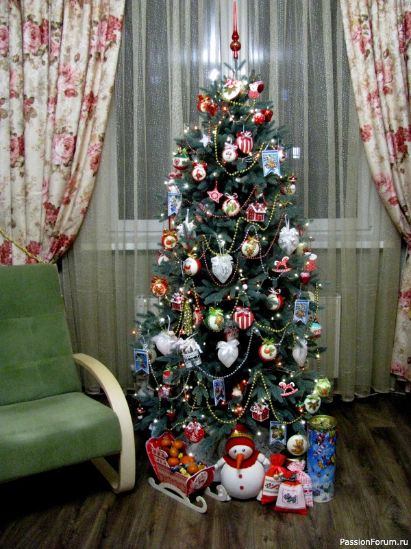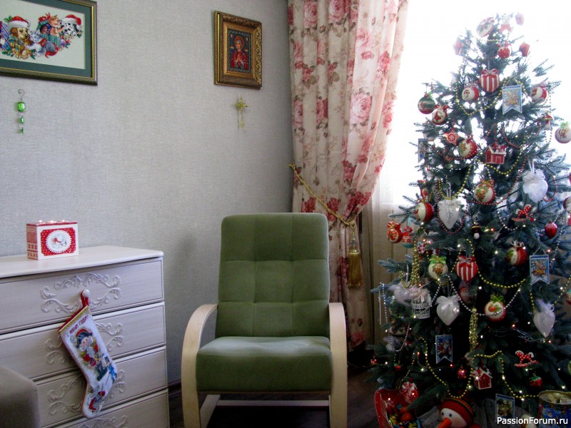 Алла, всё как всегда, с большим вкусом и мастерством!!! Все игрушечки на елке ручной работы, не знающие люди, ни за что бы не поверили, что всю эту красоту можно сделать своими руками))) Вышивка и как вы ее представили просто полет, комод, мне кажется, что это тоже Ваша работа, просто нет слов Красота))