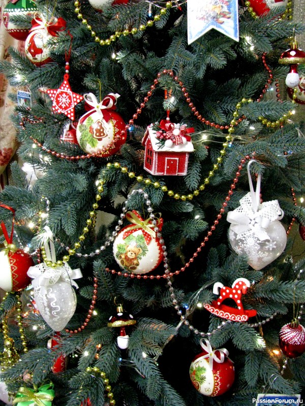 Алла, статная красавица- ваша ёлочка! очень пышное убранство, люблю бусы на ёлке, а сколько игрушек, сделанных с любовью! Мира и добра Вашему дому!