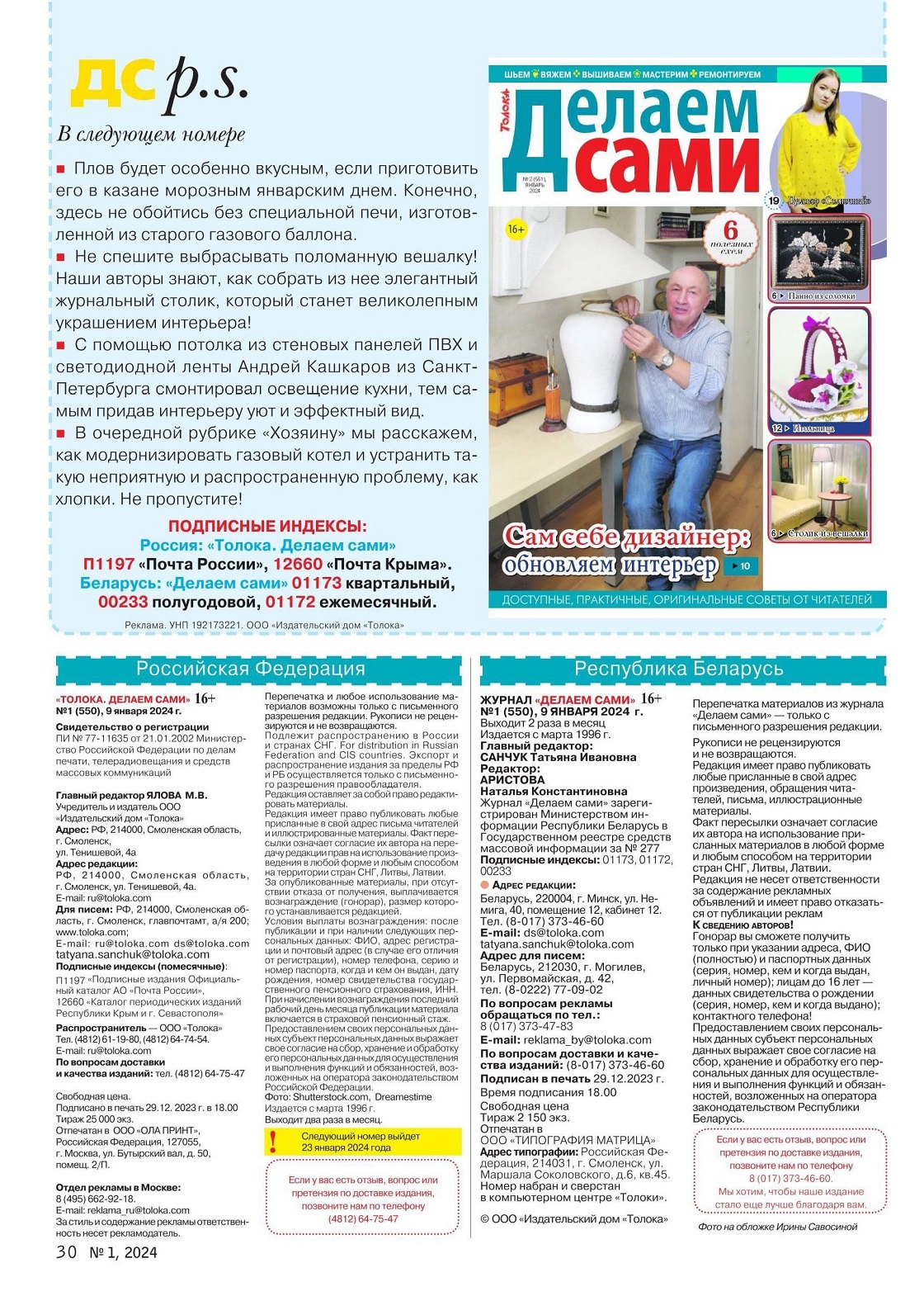 Коллекция проектов для рукодельниц в журнале «Делаем сами №1 20234»