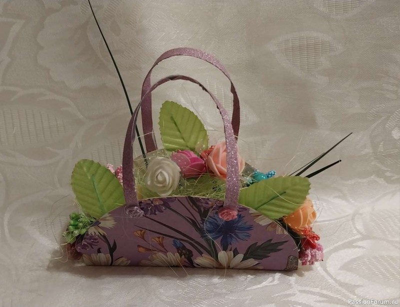Сумочка из картона.Я ею очень заинтересовалась в преддверии наступающего 8 марта. Таня потом прислала выкройку сумочки в чат.