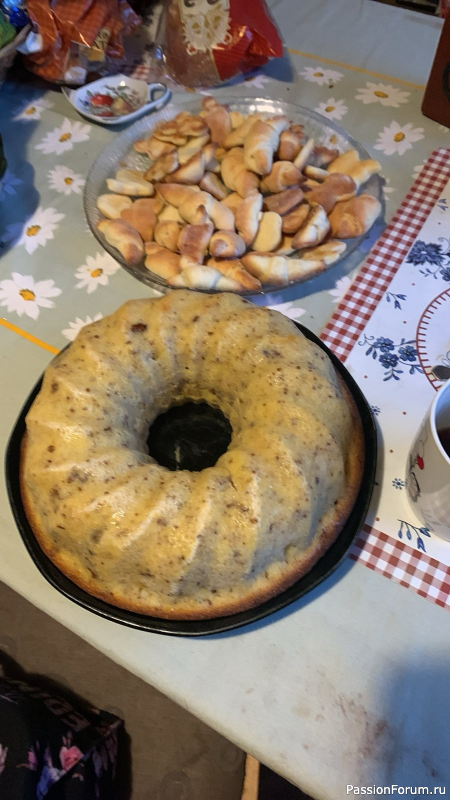 Из Эстонии от Оли прилетело фото:" Это мои вкусности. Это то что удалось сфотографировать до накрытия стола… Потом не реально… пятеро едоков и собакин😂😂😂Хорошо что мне оставили.Печеньки из творога вместо пипаркооков( это наши традиционные печенья с корицей) и манник с орехами и сухофруктами . Все это очень у нас любят Манник на кукурузной манке так вкусней как в детстве."