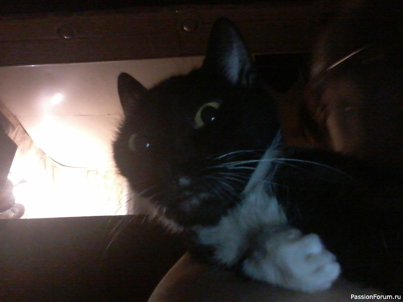 . Кошка у головы стоит и, пристально, не отрываясь, в глаза смотрит. Я чувствую и спать не могу. Приходиться вставать.