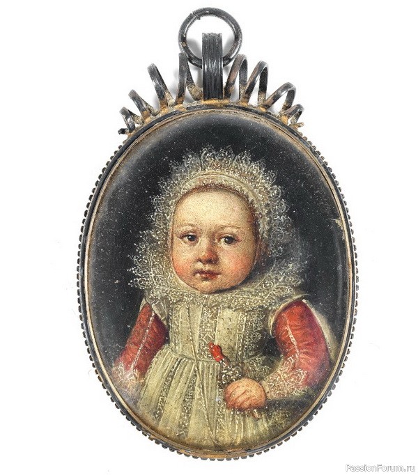 Овальный портрет ребенка с погремушкой, масло на меди, высота 6,3 см, фламандская школа, XVII век.