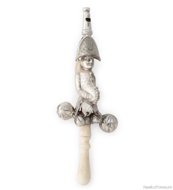 Серебряная погремушка с ручкой из слоновой кости, длина 5 см, XIXвек, из коллекции Rijksmuseum, Амстердам.