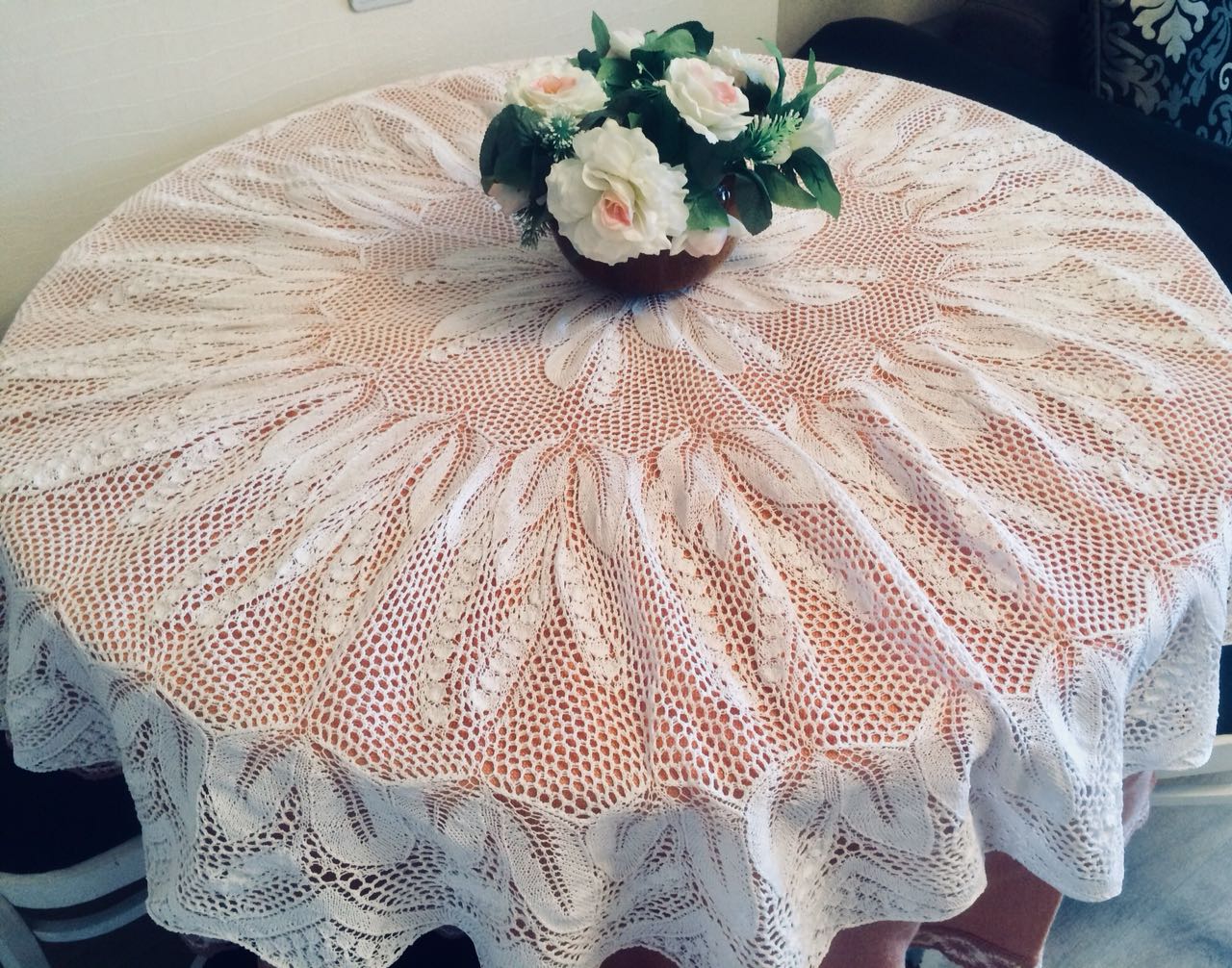 Очень красиво. Замечательно. Да еще спицами. (Я до сих пор никогда раньше не задумывалась о вязании скатертей спицами, вязала только крючком)