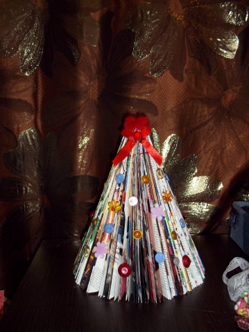 А это мы с внучкой елочку сделали в школу.