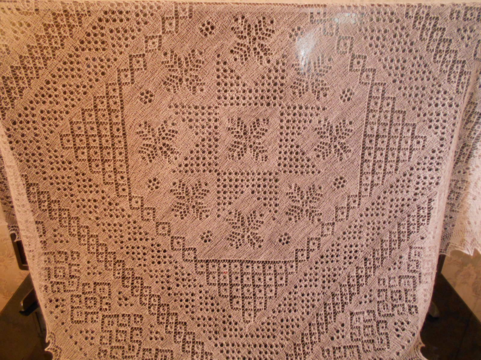 Красивая ажурная паутинка из Оренбургского козьего пуха, с добавлением шелковой нити, вся работа ручная, ниточка не запрядная, вес платочка всего 85 грамм. Тонкаая нежная работа. Размер 120 х 120 см. Авторский дизайн. Продам.