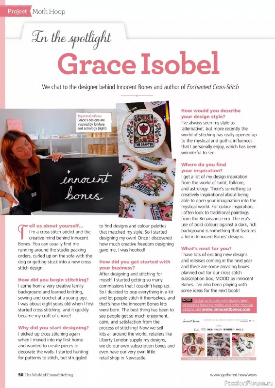 Популярный среди любителей вышивания крестом журнал из Великобритании. Красивый дизайн, множество блестящих идей для вышивания, интересные статьи, рекомендации мастеров. В каждом номере авторы журнала предлагают коллекцию самых красивых проектов от лучших дизайнеров.